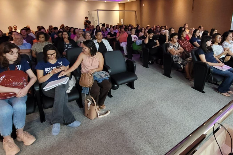 PALESTRA – Durante o evento realizado na Câmara Municipal, a presidente da Associação Brasileira das Mulheres de Carreira Jurídica, Manoela Gonçalves, falou sobre a “A importância das Redes de Atendimento e Enfrentamento à Violência Doméstica contra as Mulheres”.