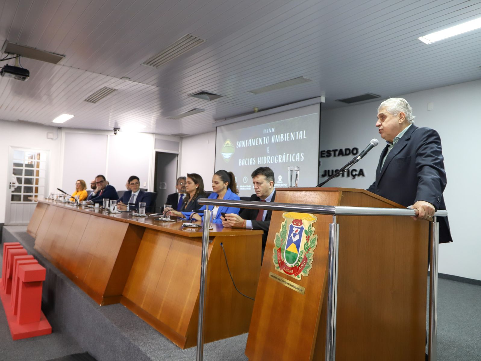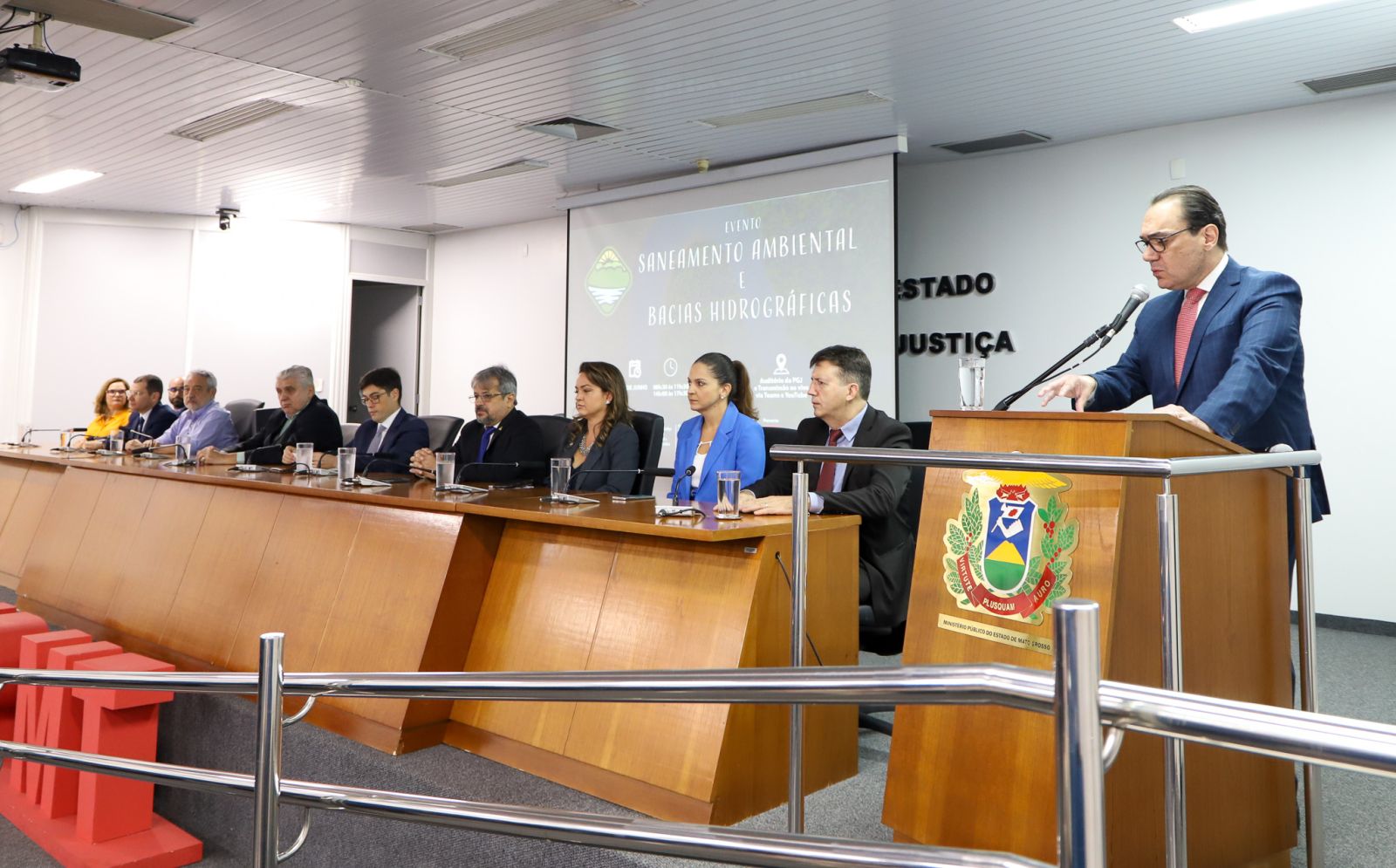 O procurador-geral de Justiça, Deosdete Cruz Junior, falou sobre a felicidade em receber todo esse público na casa do MPMT e revelou comumente pensar a respeito da relevância dos eventos promovidos pela instituição. “E para mostrar a relevância do que estamos fazendo aqui hoje e do resultado que vai advir desse trabalho, trouxe dados extraídos do 14º Ranking do Saneamento publicado pelo Instituto Trata Brasil, que revelam que a falta de saneamento básico prejudica mais de 130 milhões de brasileiros. Quase 35 milhões de pessoas vivem em nosso país sem água tratada, 100 milhões de brasileiros não têm acesso à coleta de esgoto, o que está diretamente ligado a questões de saúde e qualidade de vida”, ponderou.