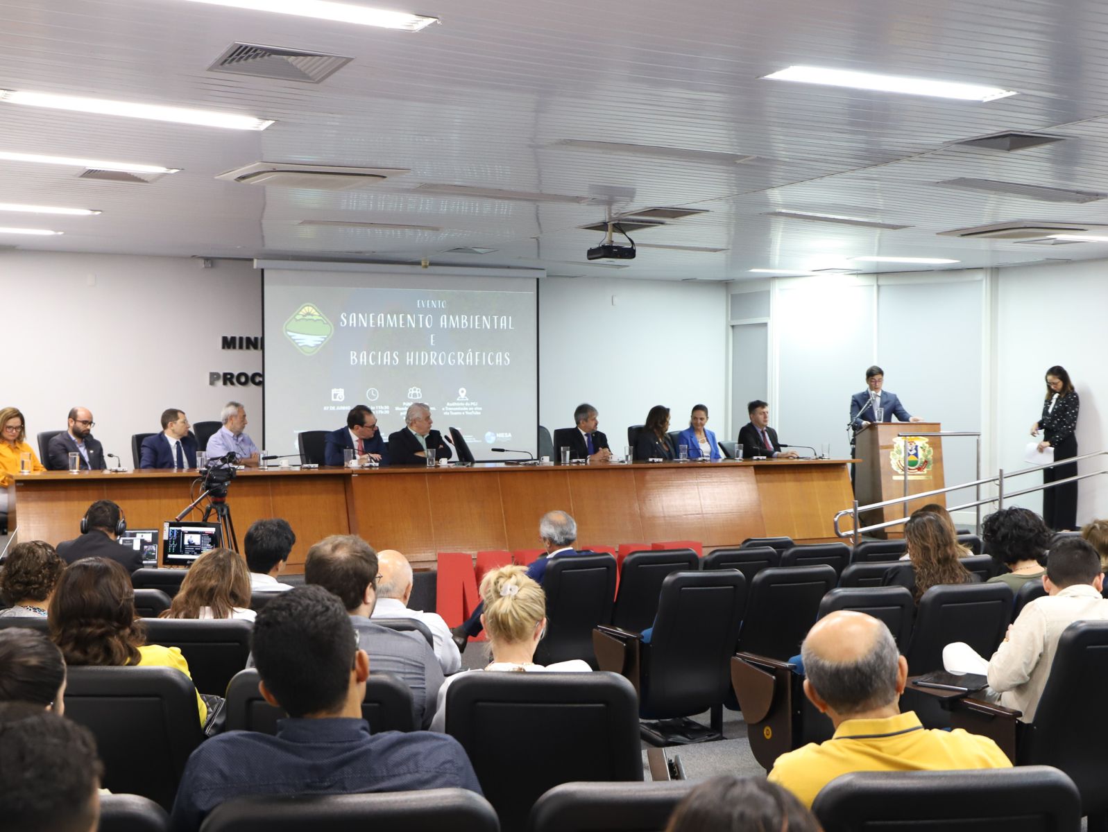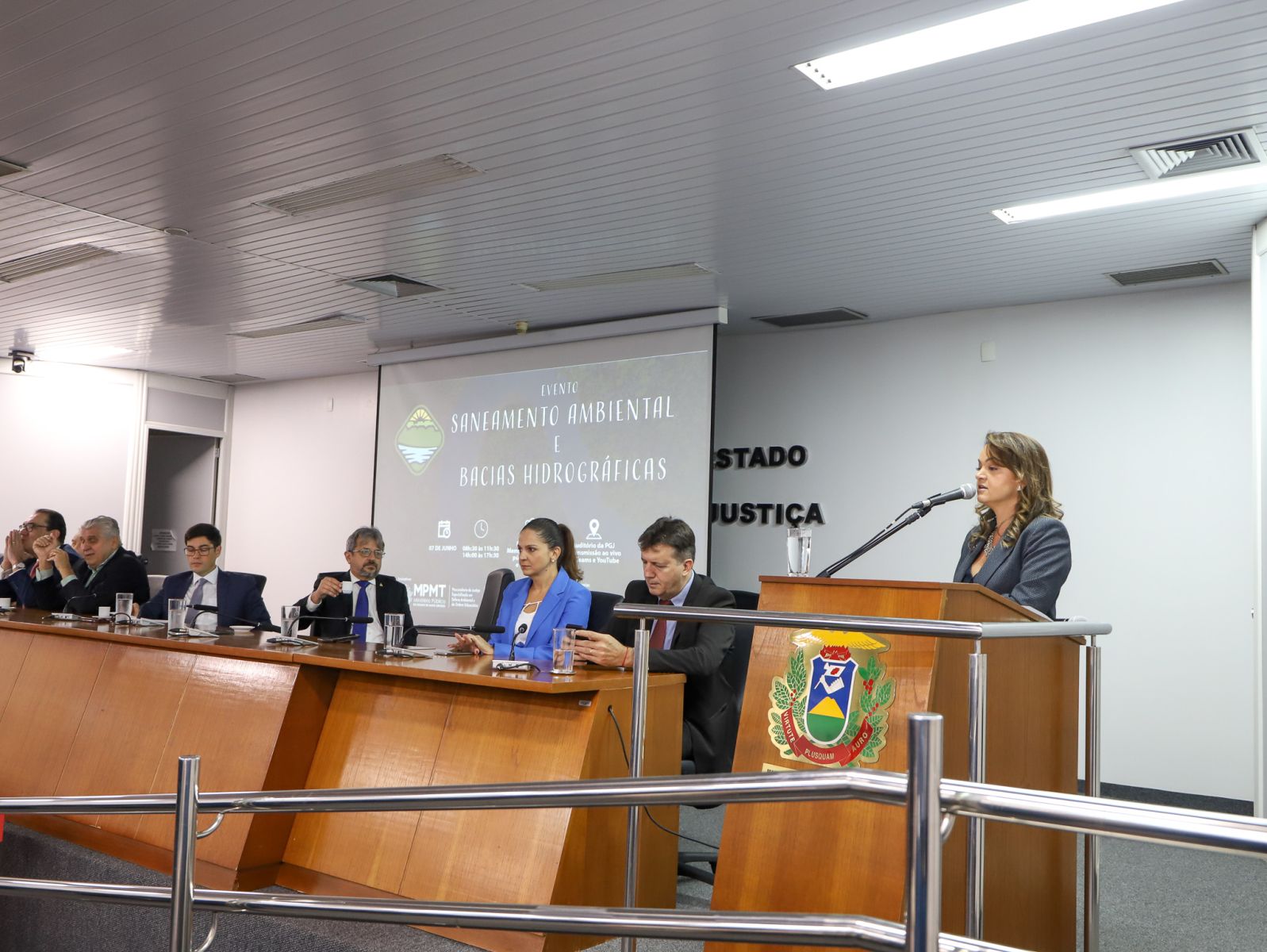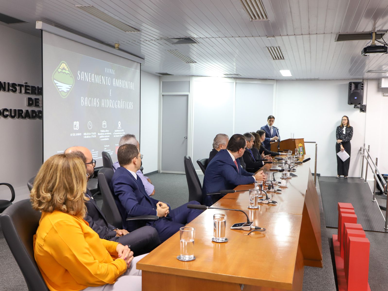 Na Semana do Meio Ambiente, a Procuradoria de Justiça Especializada em Defesa Ambiental e da Ordem Urbanística (PJEDAOU) do Ministério Público de Mato Grosso promoveu um debate sobre saneamento básico e a atuação regionalizada por bacias hidrográficas. O evento híbrido realizado em parceria com o Centro de Estudos e Aperfeiçoamento Funcional (Ceaf) - Escola Institucional do MPMT nesta quarta-feira (7), no auditório da Procuradoria-Geral de Justiça e com transmissão ao vivo pelo YouTube, reuniu cerca de 130 pessoas.