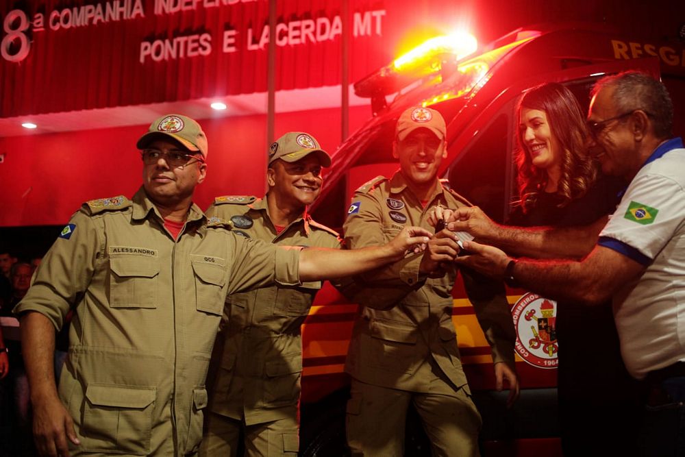 As chaves foram entregues pela promotora de Justiça Mariana Batizoco Silva Alcântara, durante a solenidade de aniversário da companhia e de formatura do Projeto Social Bombeiros do Futuro dos municípios de Jauru, Nova Lacerda, Vale de São Domingos, Vila Bela da Santíssima Trindade, Pontes e Lacerda.