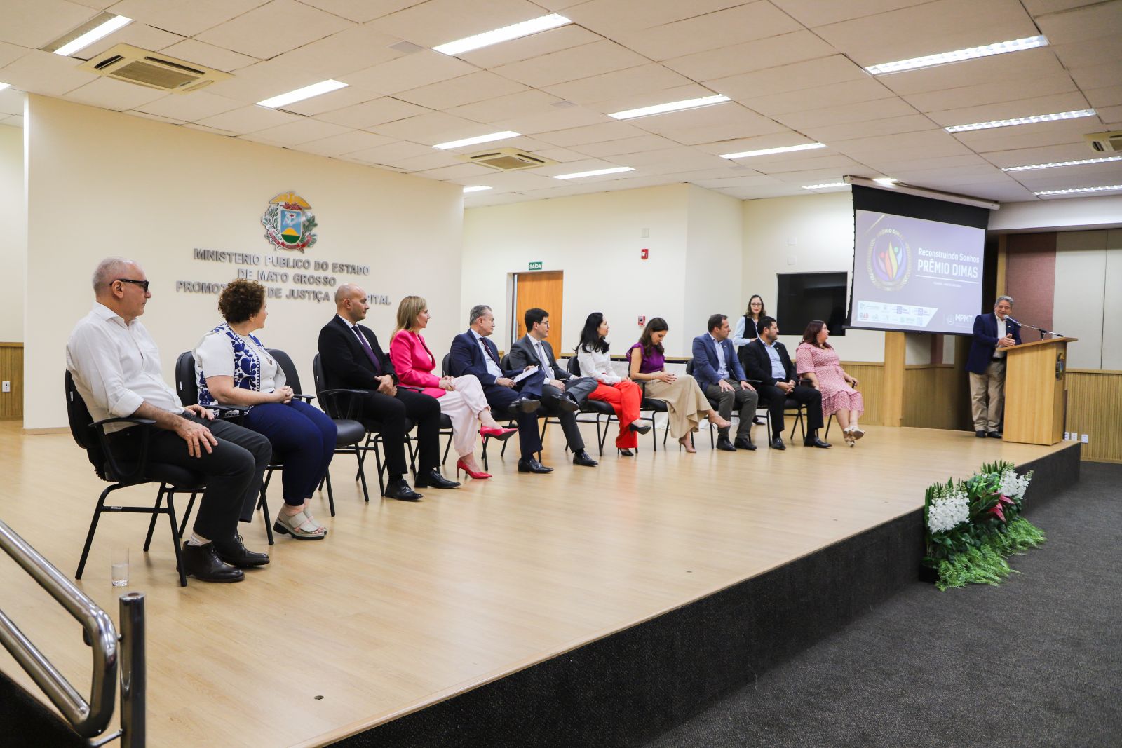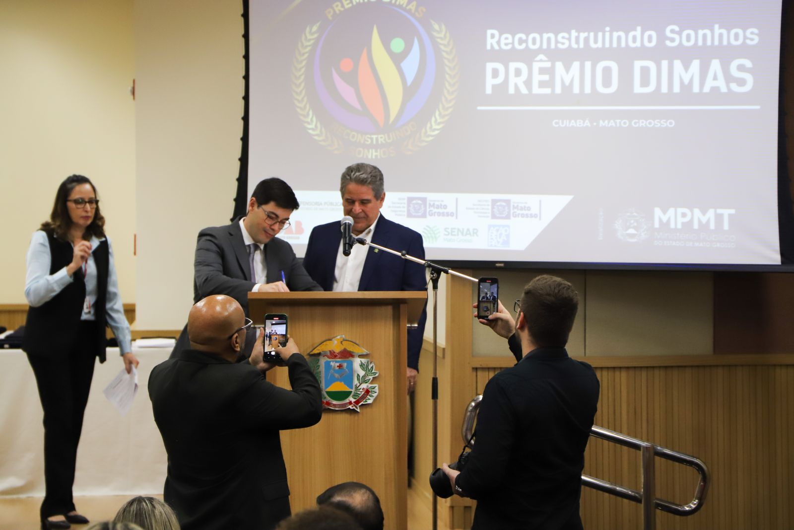 O projeto Reconstruindo Sonhos encerrou as atividades de 2023 com a entrega do 1º Prêmio Dimas, apresentação de resultados e formalização de uma nova parceria em um evento comemorativo que reuniu instituições parceiras, voluntários e apoiadores da iniciativa. A solenidade ocorreu na tarde desta sexta-feira (1º), no auditório da sede das Promotorias de Justiça de Cuiabá.