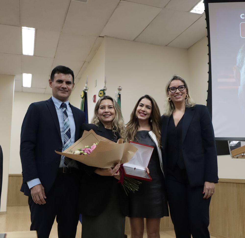 Homenagem - Como parte das comemorações alusivas ao Mês da Mulher, o Ministério Público do Estado de Mato Grosso e a Associação Mato-Grossense do Ministério Público (AMMP) homenagearam a promotora de Justiça Marcelle Faria pela atuação no Tribunal do Júri e pela escolha da defesa da vida como principal bandeira de trabalho.