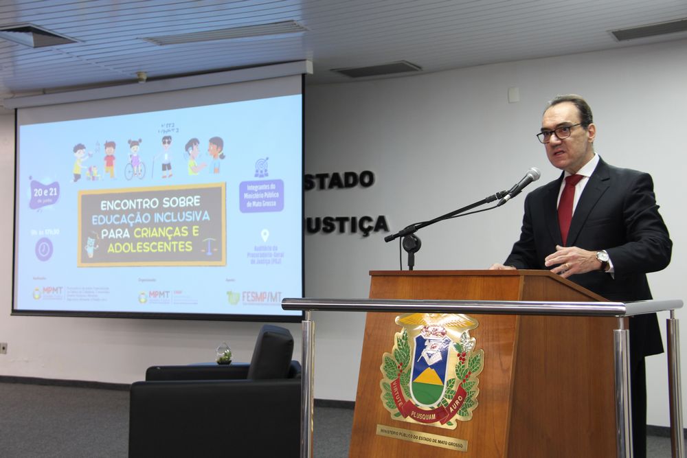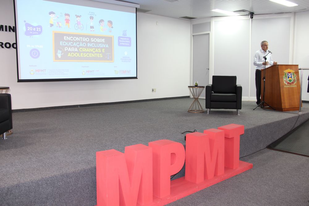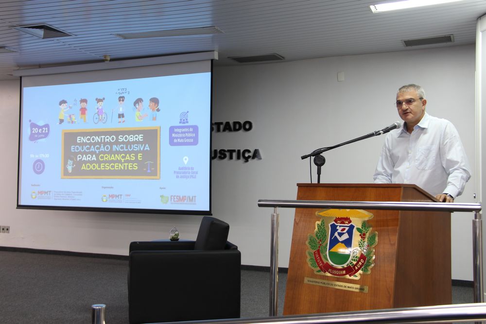 Representando o procurador-geral de Justiça, o coordenador do Centro de Estudos e Aperfeiçoamento Funcional (Ceaf) - Escola Institucional do MPMT, promotor de Justiça Antonio Sergio Cordeiro Piedade, apontou a autonomia pedagógica da escola, enalteceu a relevância do tema e a importância de sensibilizar toda a rede sobre Educação Inclusiva para Crianças e Adolescentes. Ele ainda defendeu que o conhecimento e o preparo técnico contribuem para uma atuação mais abalizada, consistente e assertiva dos integrantes da instituição.