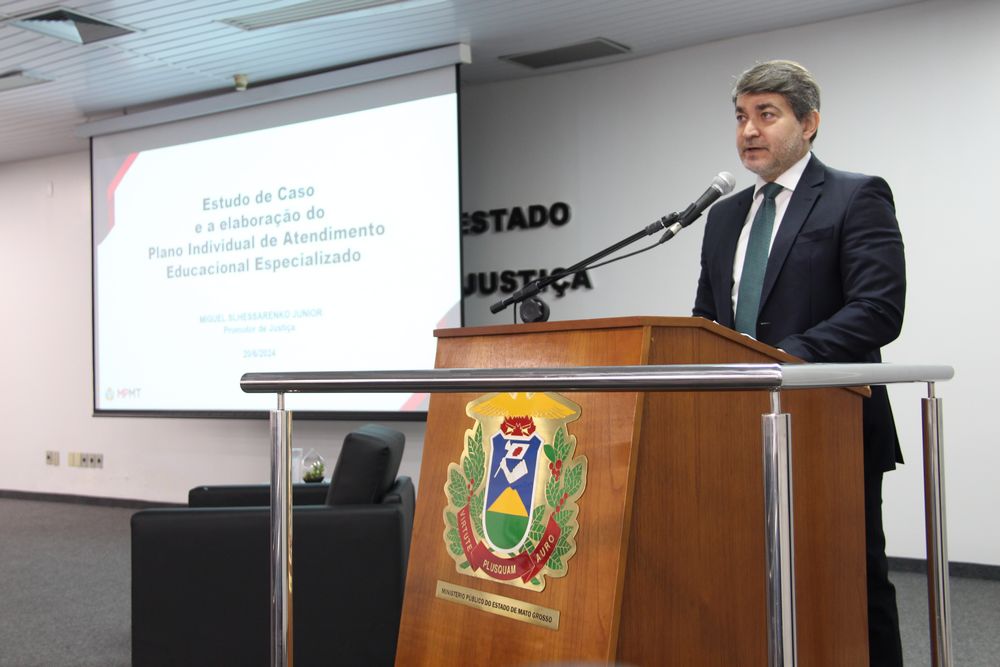 Após a abertura, o jovem Stefano Garcia Massud, que está dentro do espectro autista, contou um pouco da própria história de esforço, aprendizado e conquistas. Na sequência, às 9h30, foi realizada a primeira palestra, com o tema “Estudo de caso e a elaboração do Plano Individual de Atendimento Educacional Especializado”, tendo como expositor o promotor de Justiça do MPMT Miguel Slhessarenko Junior e como mediadora a promotora de Justiça do MPMT Tessaline Higuchi.