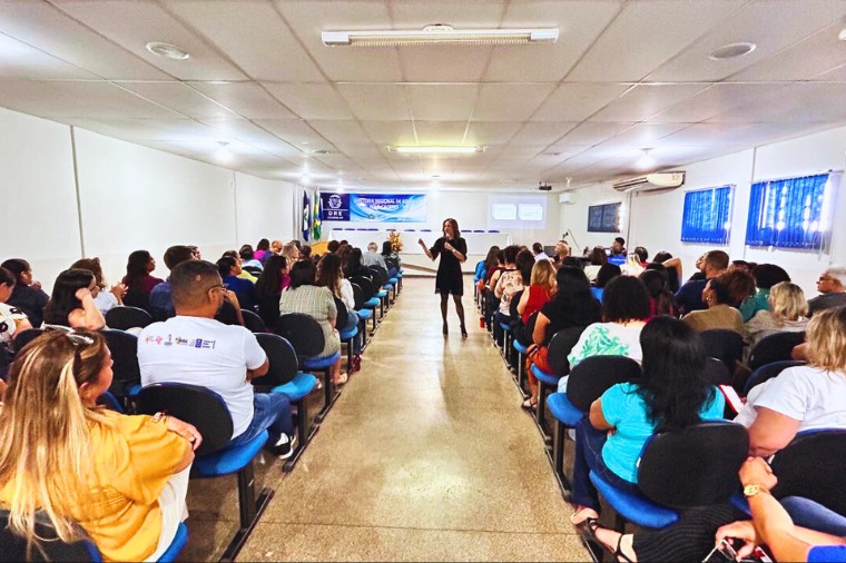 A palestra foi realizada no período vespertino na sede da DRE de Cáceres com a participação de diretores, coordenadores pedagógicos, pontos focais que são os responsáveis pela busca ativa dos alunos.