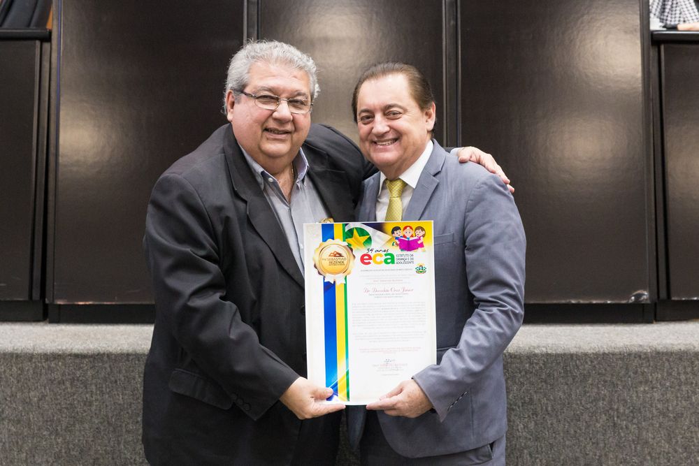 Moção de aplausos - Durante a solenidade, autoridades indicadas pelo Cedca foram agraciadas com uma moção de aplausos pelos 34 anos do ECA, concedida pelo deputado Sebastião Rezende. O procurador-geral de Justiça de Mato Grosso, Deosdete Cruz Junior, foi um dos homenageados “por ser parte integrante das políticas públicas em defesa dos direitos das crianças e dos adolescentes do Estado”.