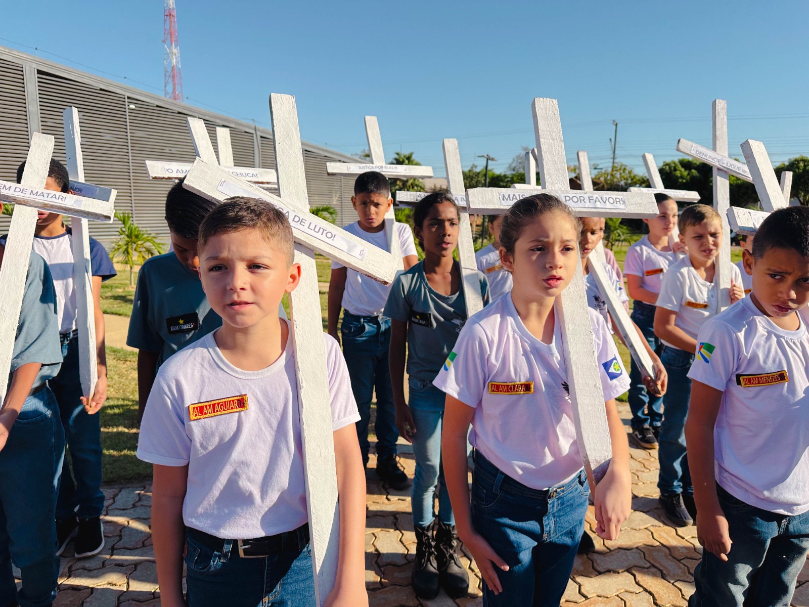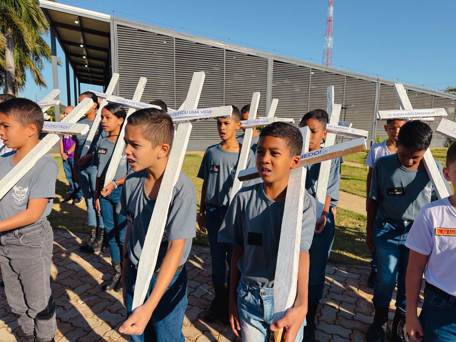 Durante a manhã, crianças e adolescentes percorreram ruas e avenidas da cidade com faixas, cartazes e cruzes simbólicas, clamando por justiça e alertando sobre os diversos tipos de violência que afetam mulheres em todo o país como a física, psicológica, sexual, emocional e moral. Ao final, os estudantes fincaram cruzes em frente ao Paço Municipal em homenagem às vítimas de feminicídios.