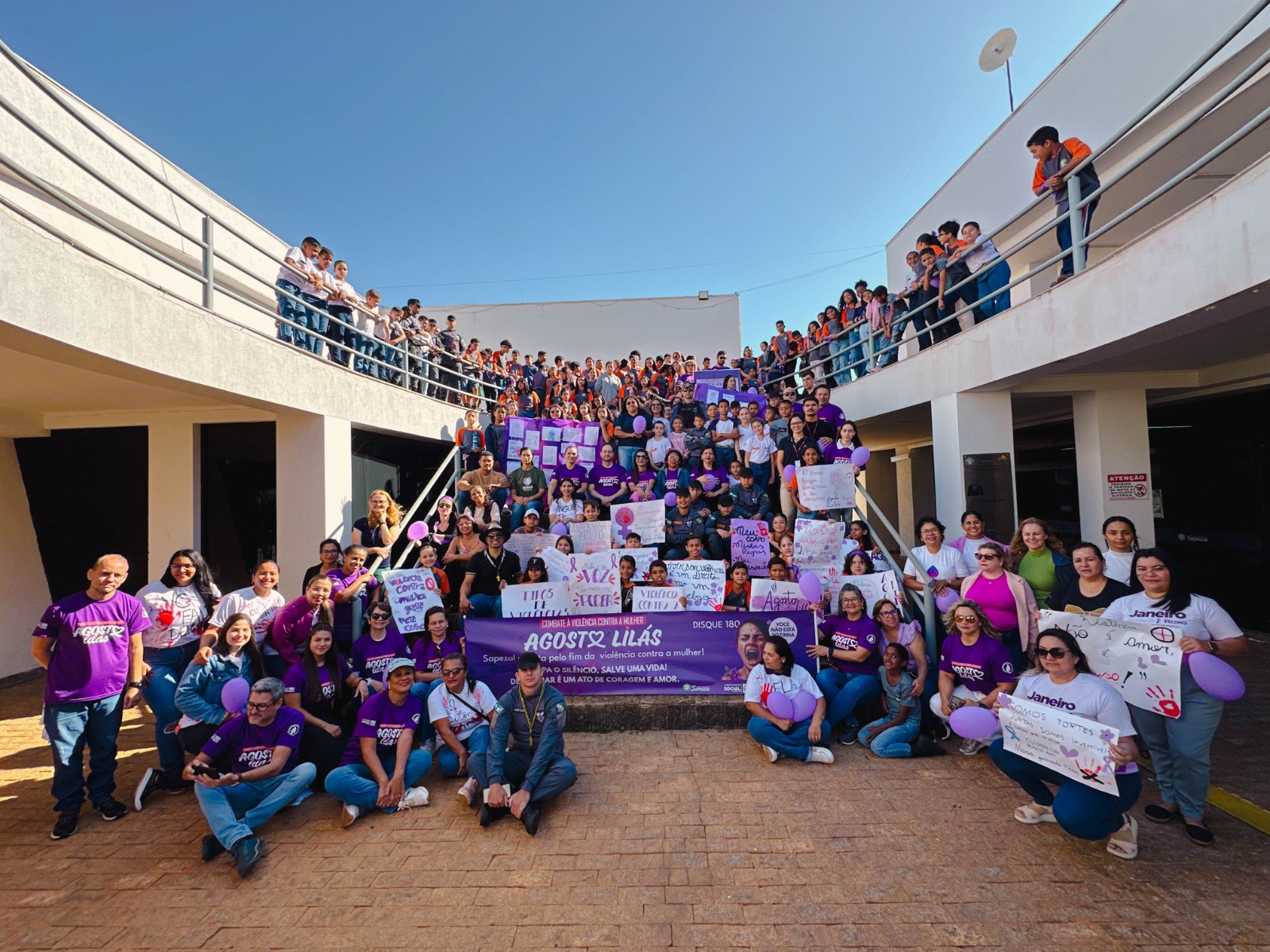 Centenas de estudantes das redes municipal e estadual de ensino participaram, nesta sexta-feira (15), do “Arrastão do Bem – Agosto Lilás”, uma mobilização pública de conscientização e enfrentamento à violência contra a mulher. A ação foi promovida por meio de uma parceria entre a Promotoria de Justiça de Sapezal, a Secretaria Municipal de Assistência Social, a Secretaria Municipal de Educação, o Centro de Referência de Assistência Social (CREAS), Polícia Militar, Polícia Civil e Conselho Municipal em Defesa das Mulheres.
