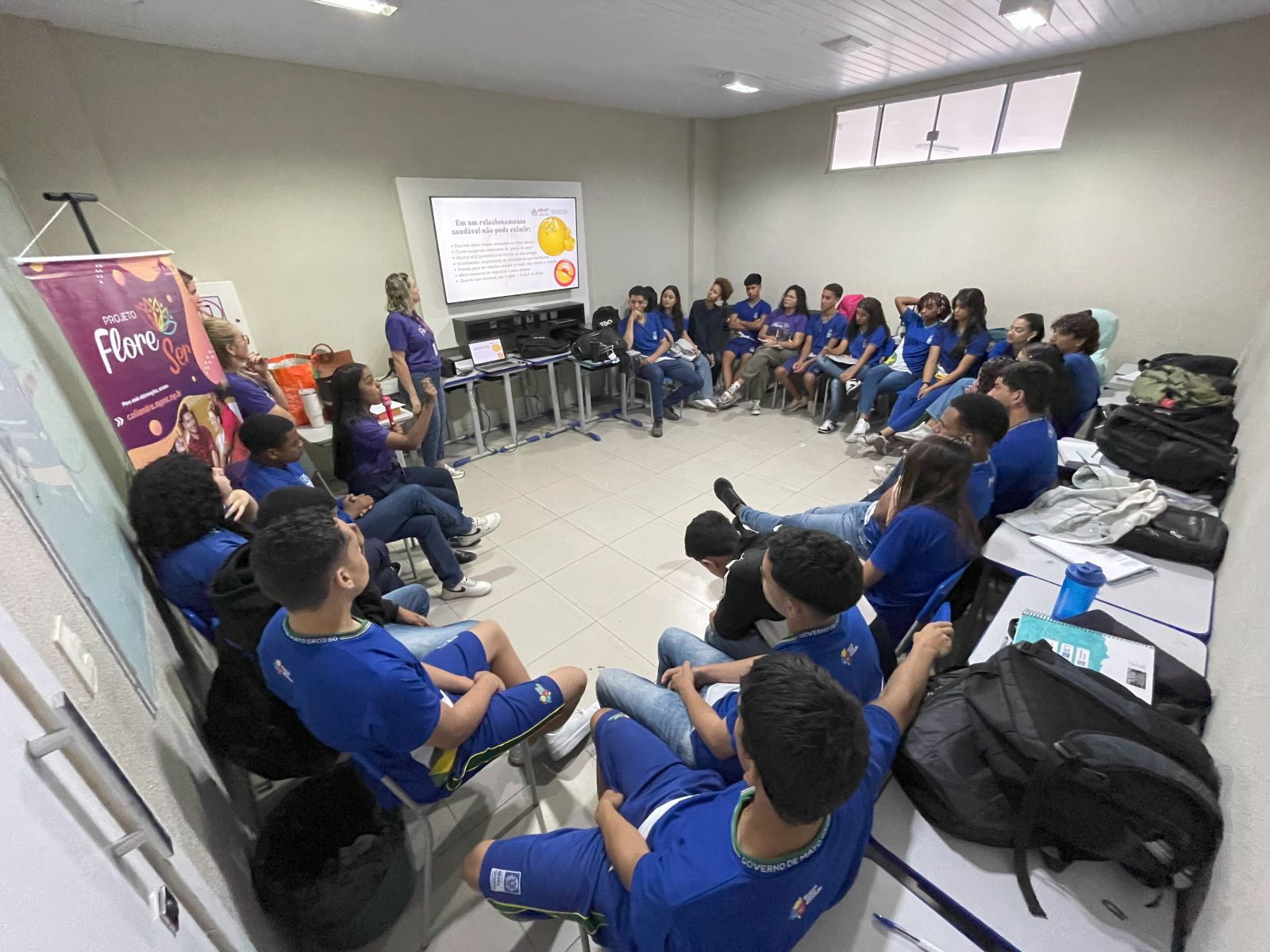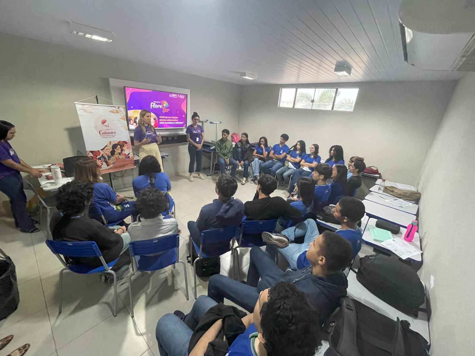 “Hoje trouxemos o Projeto FloreSer para a Escola Benedito de Carvalho, explicando aos jovens as questões de misoginia e desigualdade de género, para entender como eles percebem a diferença e a violência de género”, afirmou Dutra.