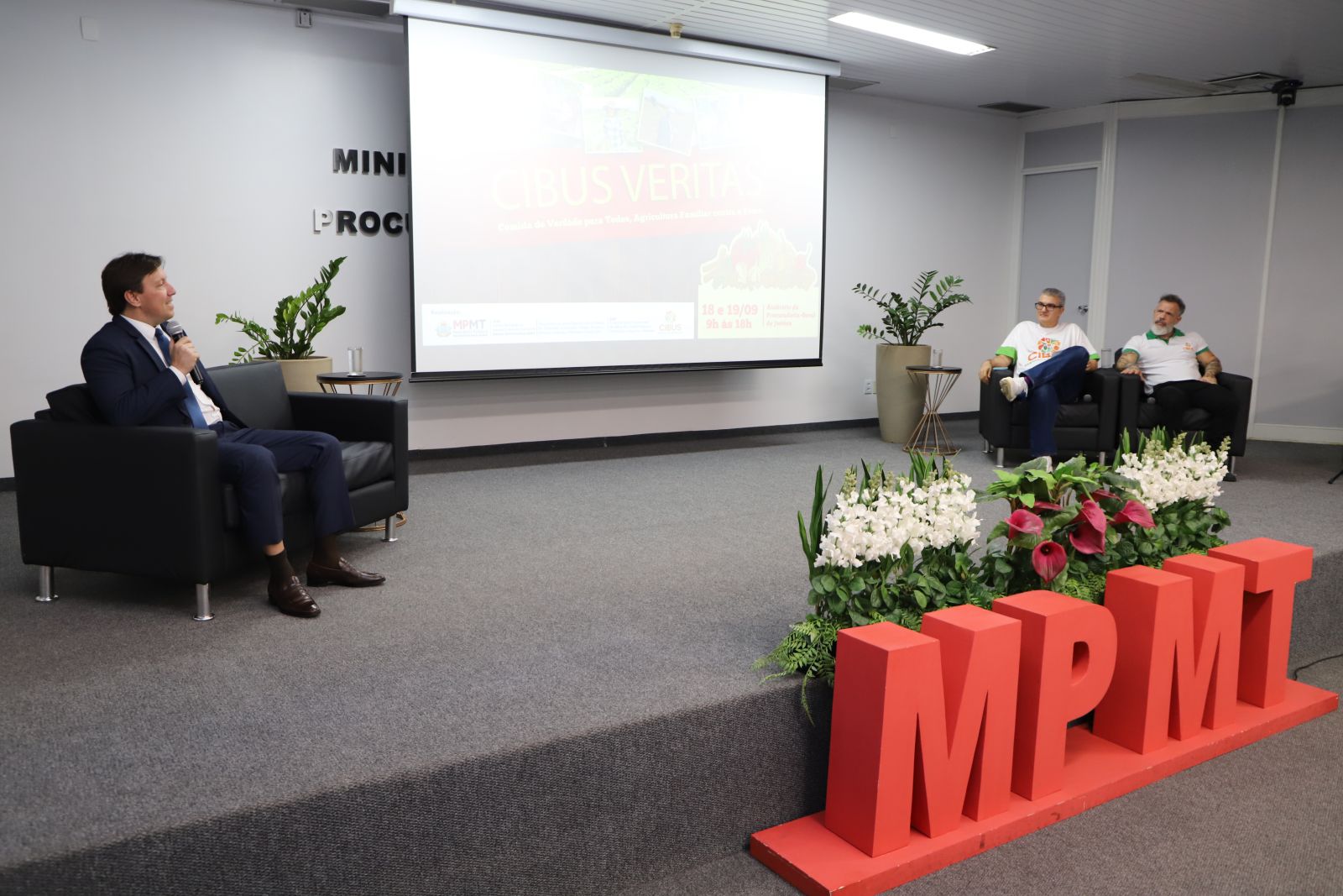 O evento integra a segunda etapa do projeto Cibus Veritas. “Nosso compromisso é com o Estado de Mato Grosso. Precisamos mudar a posição de políticas de governo para políticas de Estado, especialmente diante da urgência climática que afeta diretamente a alimentação do nosso povo”, destacou o procurador de Justiça José Antônio Borges Pereira, titular da Procuradoria de Justiça Especializada na Defesa da Cidadania, Consumidor, Direitos Humanos, Minorias, Segurança Alimentar e Estado Laico.