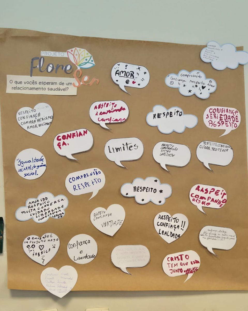 Dinâmicas - com duração média de 1h30, as rodas de conversa são construídas de forma interativa. As facilitadoras do FloreSer incentivam a participação ativa dos alunos, promovendo a troca de experiências e plantando, como dizem, uma “sementinha” na formação dos estudantes. “Ver os adolescentes se abrirem, refletirem e perceberem que podem construir relacionamentos mais saudáveis e respeitoso é algo que nos renova”, afirmou a assistente ministerial Maisa Magda Fernandes, que também atua no FloreSer.