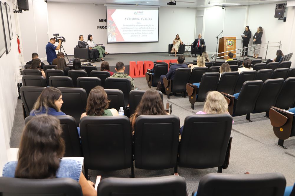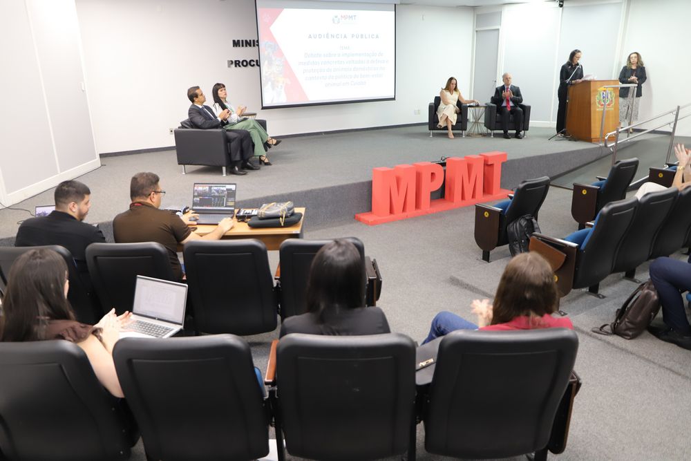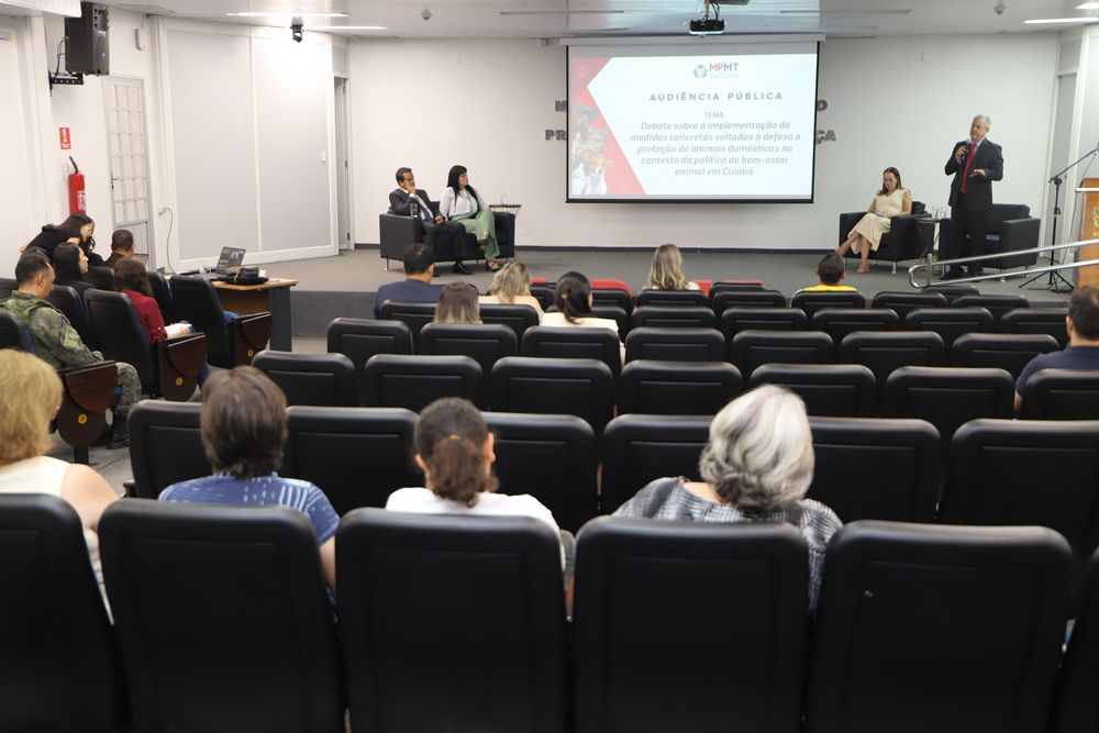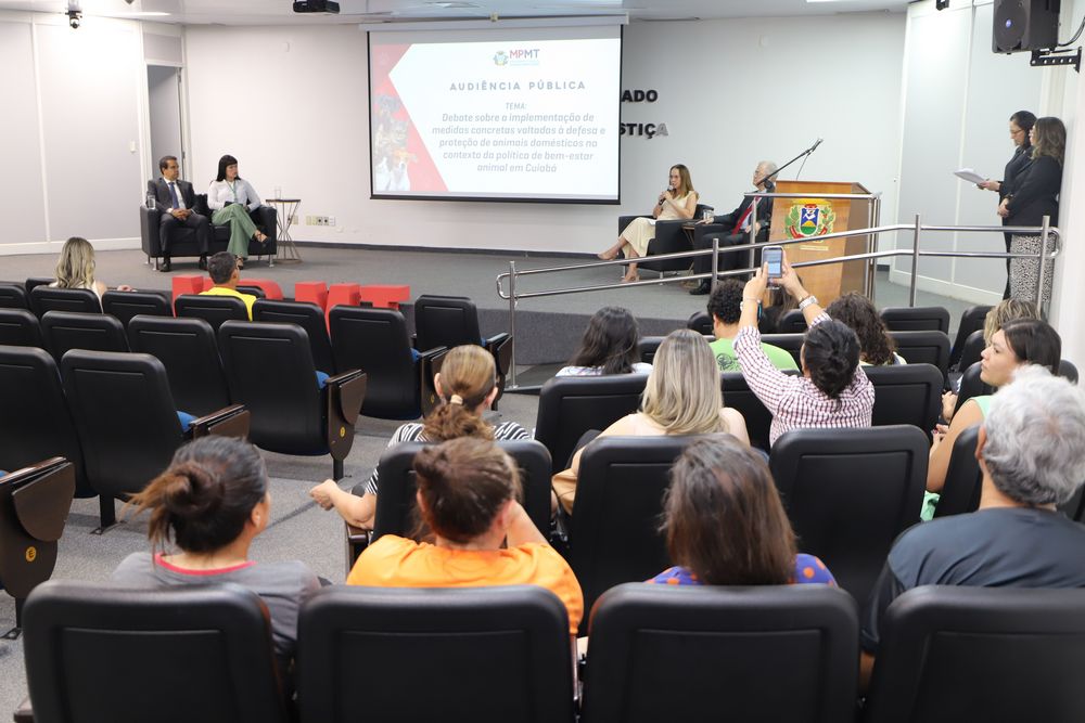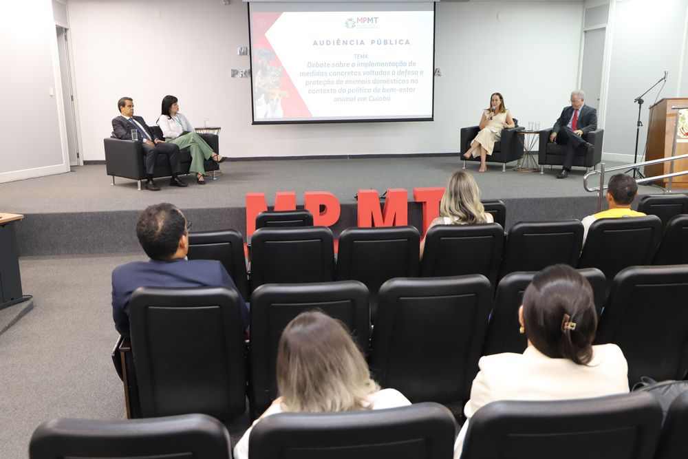 Com o objetivo de fortalecer a política de bem-estar animal, o Ministério Público do Estado de Mato Grosso (MPMT) promoveu na sexta-feira (10) a audiência pública “Debate sobre a implementação de medidas concretas voltadas à defesa e proteção de animais domésticos no contexto da política de bem-estar animal em Cuiabá”, que reuniu representantes da sociedade civil, órgãos públicos e especialistas para debater medidas concretas de proteção aos animais domésticos.