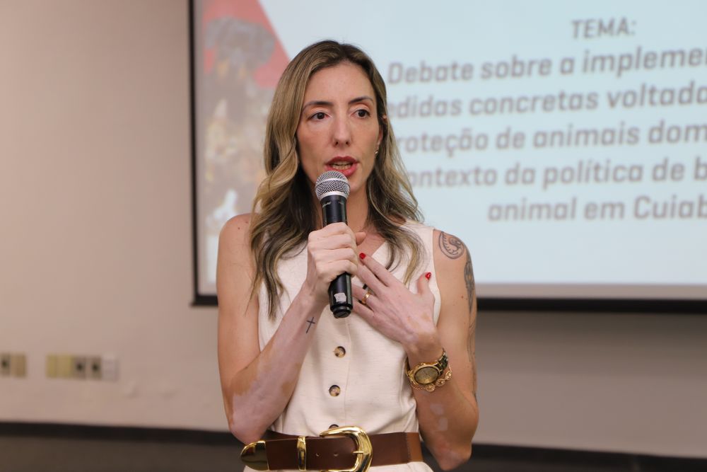 Representando a Diretoria de Bem-Estar Animal do Município de Cuiabá, a médica veterinária Morgana Thereza Ens apresentou ações recentes na estrutura da pasta. “Hoje temos uma setorização clara, com responsáveis técnicos em cada área, o que permite alinhamento e cobrança de resultados. Criamos procedimentos operacionais padrão para garantir que todos falem a mesma língua dentro da política de bem-estar animal”, explicou.