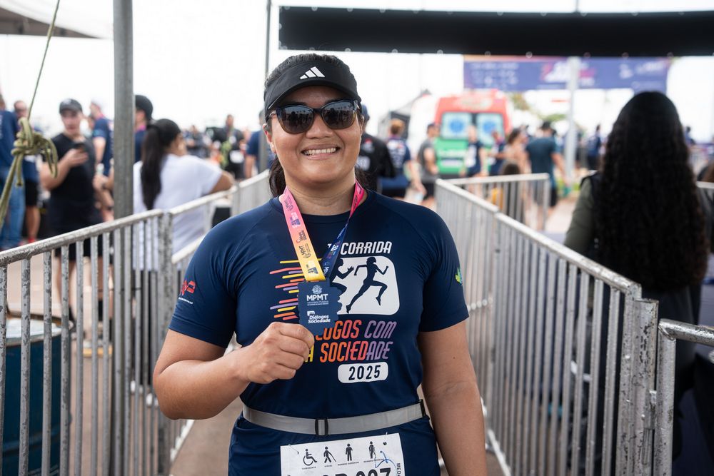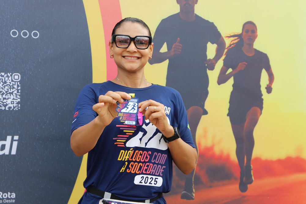 A medalha, aliás, virou protagonista. “Está tudo maravilhoso, adorei. A energia na hora que cheguei aqui, falei: é balada! Foi bem diferente de outras provas que eu corri. E a medalha é perfeita, amei, mais uma para a coleção”, comemorou Leilimar da Silva Dias, servidora do Departamento de Gestão de Pessoas (DGP).