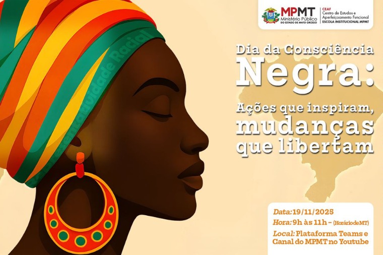 Para marcar o Dia da Consciência Negra, o Ministério Público de Mato Grosso (MPMT) realizará, nesta quarta-feira (19), o evento online “Dia da Consciência Negra: Ações que inspiram, mudanças que libertam”, com o objetivo de estimular reflexões sobre igualdade racial, diversidade e combate ao racismo estrutural.