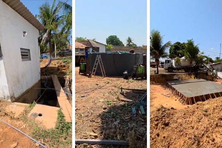Até o momento, foram instaladas duas novas caixas d’água, uma com capacidade de 250 mil litros e outra de 100 mil litros, que já estão posicionadas no local e aguardam integração ao sistema, dependendo da chegada de tubulações metálicas específicas. Também foi iniciada a construção das bases para dois filtros pré-moldados, já adquiridos e pagos, com previsão de instalação nos próximos 15 dias.