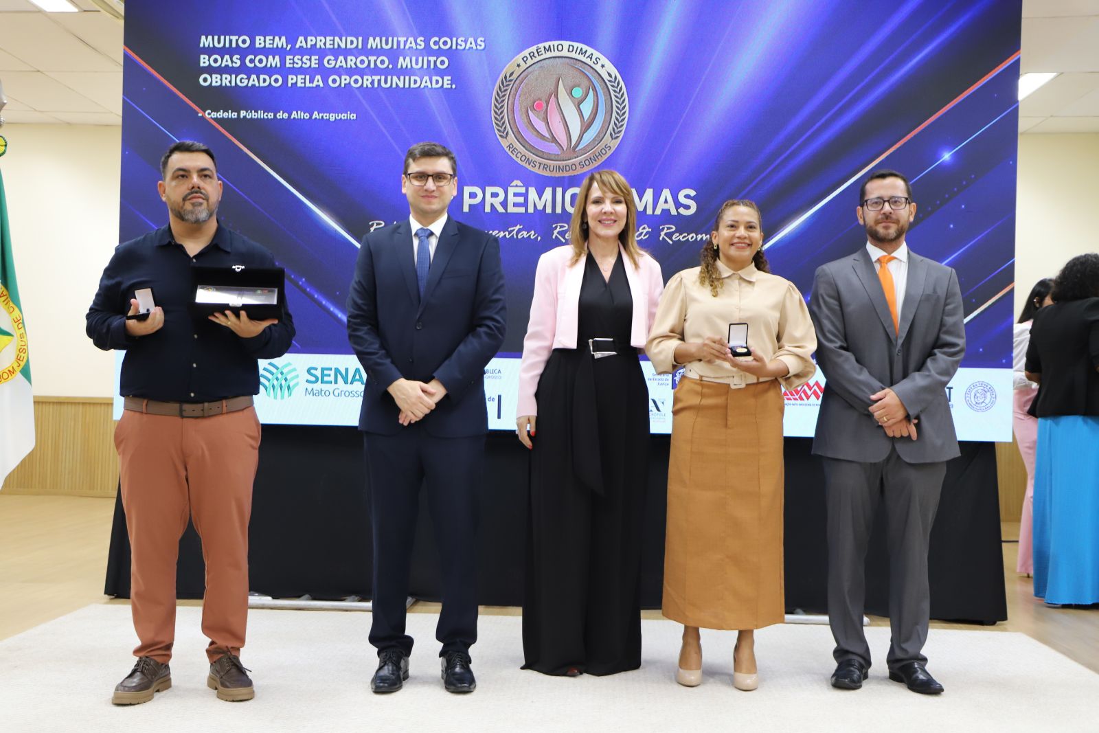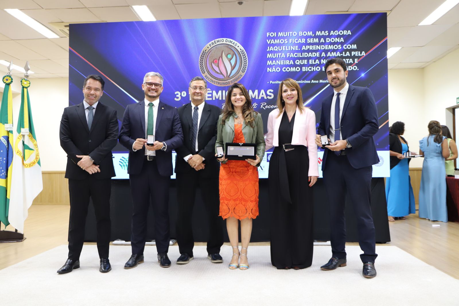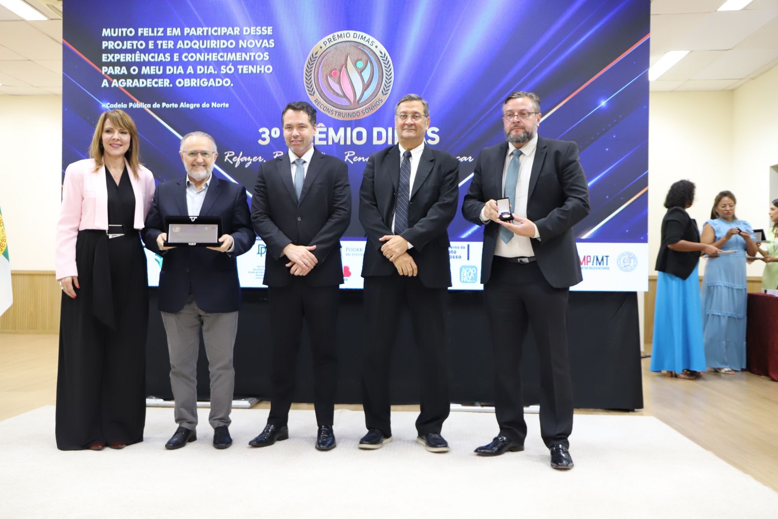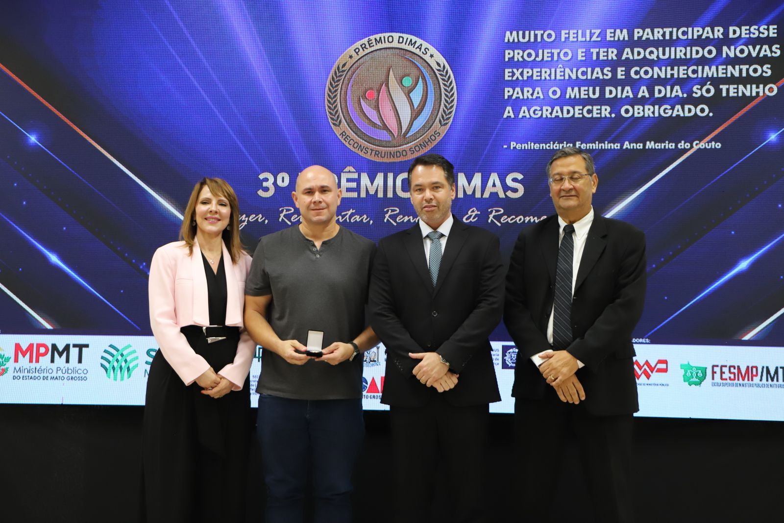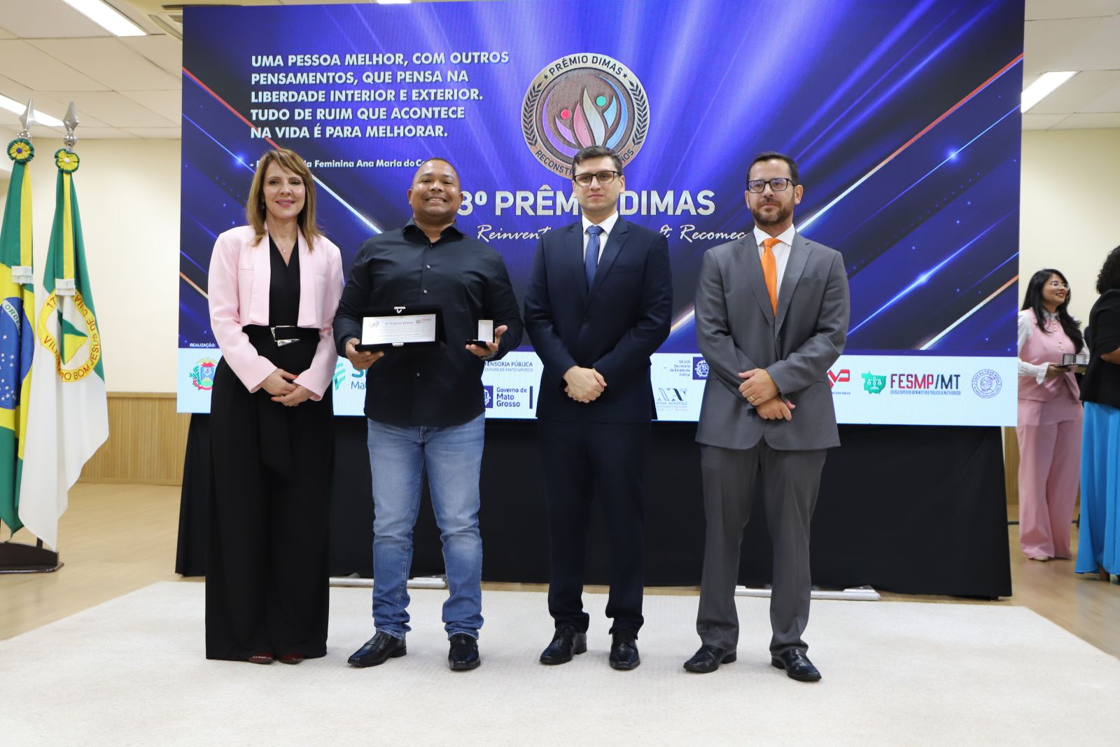 O Ministério Público de Mato Grosso (MPMT) realizou, na quarta-feira (19), na sede das Promotorias de Justiça de Cuiabá, a 3ª edição do Prêmio Dimas, iniciativa que reconhece instituições, voluntários e servidores que contribuíram para o projeto Reconstruindo Sonhos ao longo de 2025. A cerimônia reuniu autoridades, parceiros e apoiadores em um momento de celebração e reafirmação do compromisso com uma execução penal humanizada e transformadora.