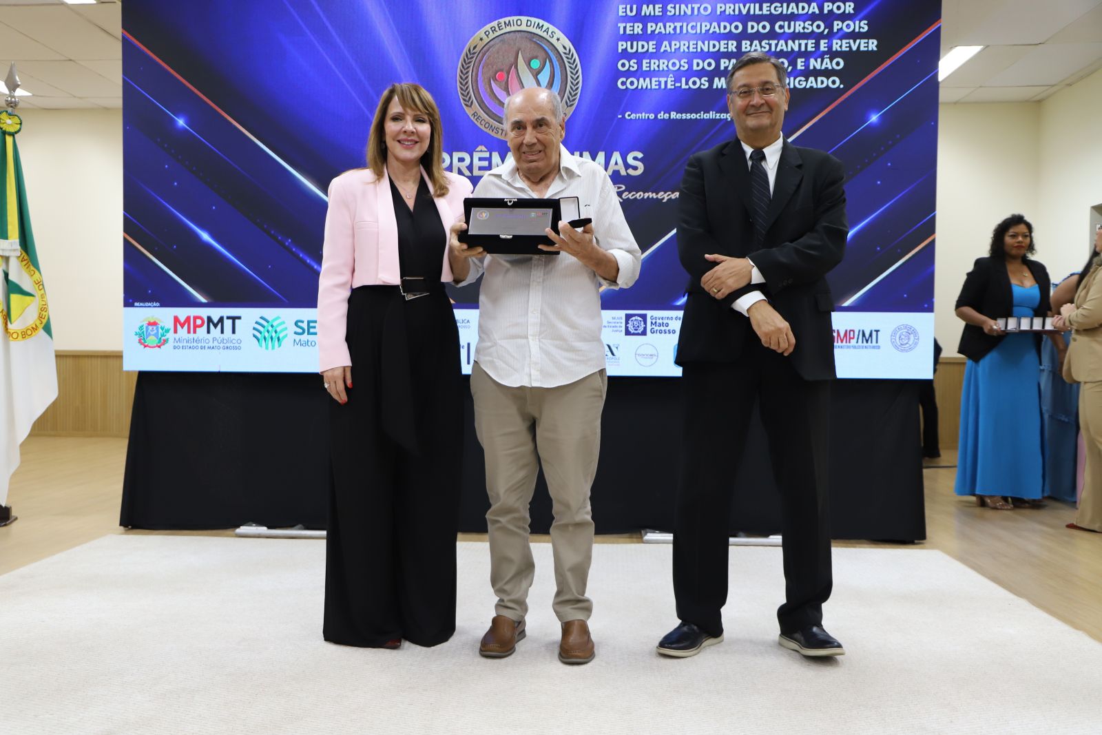 O corregedor-geral do MPMT, procurador de Justiça João Augusto Veras Gadelha, ressaltou a importância da iniciativa conjunta. “Vocês são exemplo de que quando unidos, unimos esforços, conseguimos gerar um impacto real na vida das pessoas. As unidades prisionais, nosso reconhecimento e profundo respeito pelo trabalho incansável em prol da ressocialização, que é um passo firme para reduzir desigualdade e oferecer novas oportunidades. O Prêmio Dimas é, acima de tudo, um convite para acreditarmos que é possível mudarmos as realidades”.