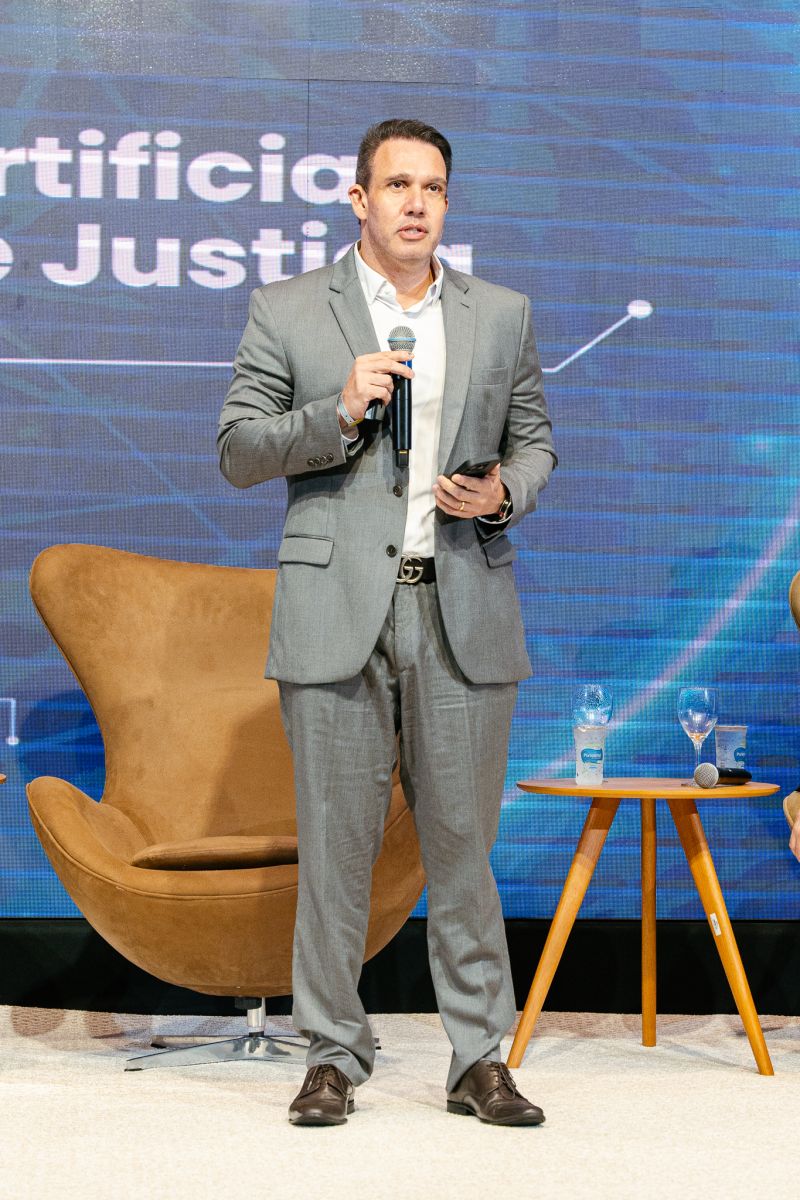 Segundo o palestrante, a adoção de ferramentas de IA já trouxe resultados concretos. “Em 2024, a Justiça brasileira alcançou uma redução histórica de 3,5 milhões de processos em seu acervo, cerca de 5%. Isso só foi possível porque os tribunais começaram a implementar, ainda que de modo incipiente, o uso da inteligência artificial generativa em todos os ramos da Justiça.”