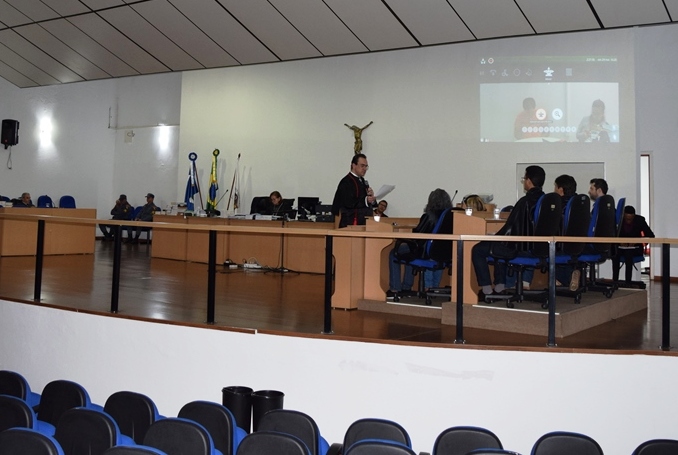 Submetido ao Tribunal do Júri por meio de sistema de videoconferência, Juscilênio de Barros foi condenado na sexta-feira (24), em Cuiabá, a 13 anos e seis meses de reclusão pelo crime de homicídio com as qualificadoras motivo torpe e utilização de recurso que dificultou a defesa da vítima. Esse foi o terceiro julgamento realizado em Cuiabá por videoconferência.