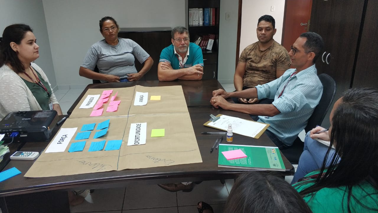 Os servidores e colaboradores terceirizados participaram de dinâmicas de integração e desenvolvimento da matriz SWOT para identificação das forças, fraquezas, oportunidades e ameaças. A partir desse levantamento, construíram estratégias de melhorias na prestação do serviço à sociedade.
