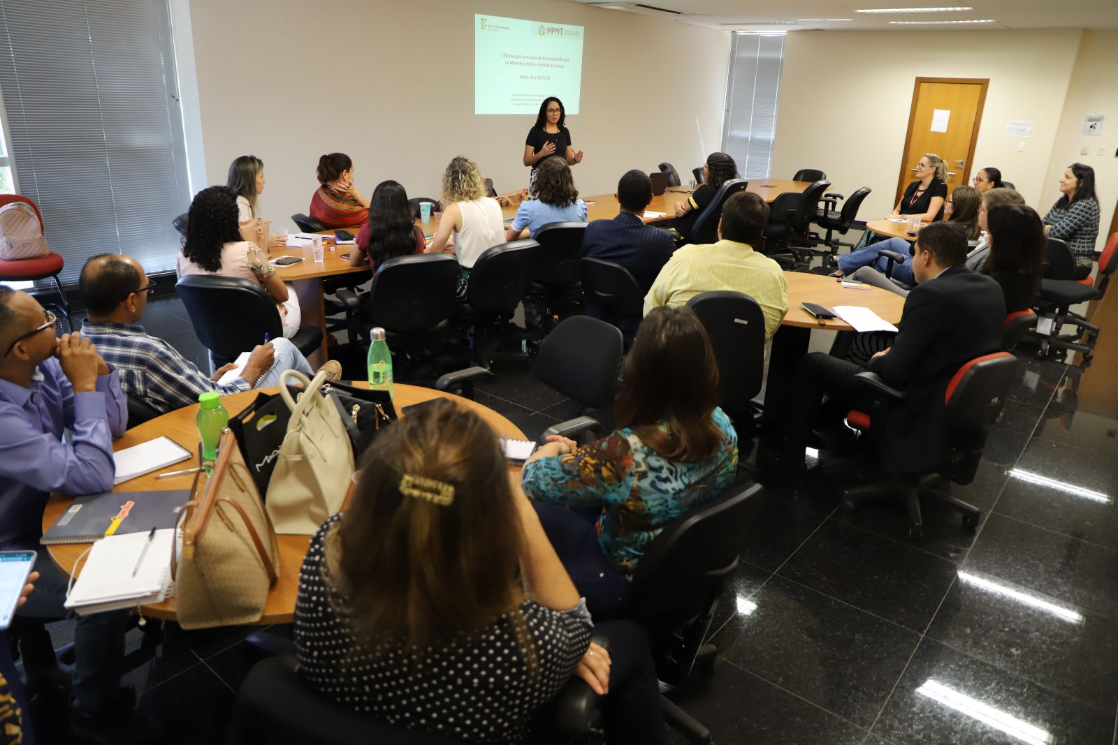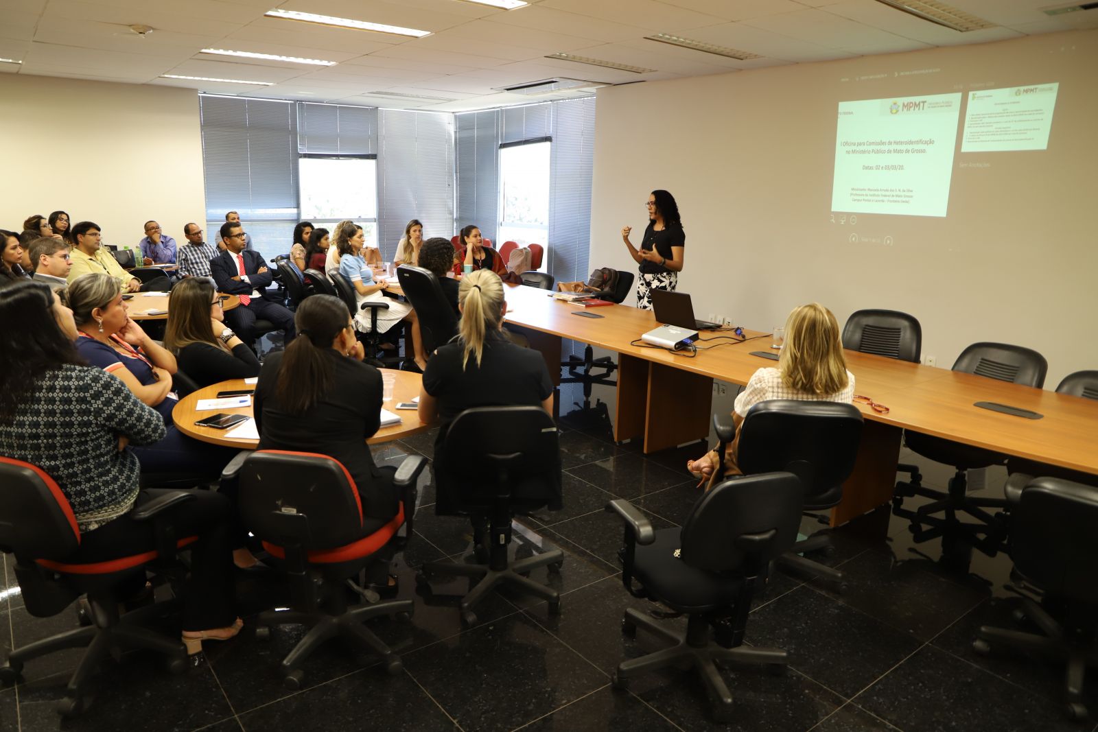 Começou nesta segunda-feira (02) a I Oficina para Comissões de Heteroidentificação promovida pelo Ministério Público do Estado de Mato Grosso, com apoio do Centro de Estudos e Aperfeiçoamento Funcional (CEAF). Cerca de 30 pessoas, entre membros e servidores da instituição, estão sendo capacitados. O curso segue até amanhã (03), das 8h30 às 18h30, na sede das Promotorias de Cuiabá.