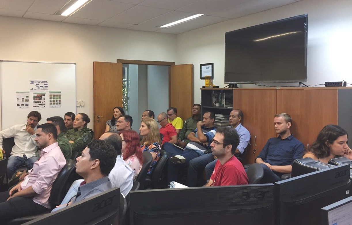 Promotores e servidores do Ministério Público do Estado de Mato Grosso (MPMT), representantes da Secretaria de Estado de Meio Ambiente (SEMA/MT), Ibama, Instituto Chico Mendes (ICMBio), Polícia Militar Ambiental, Corpo de Bombeiros e Delegacia do Meio Ambiente (Dema) participam de um treinamento sobre o Projeto Satélites Alerta, que será lançado nesta quarta-feira (04/03), em Cuiabá.