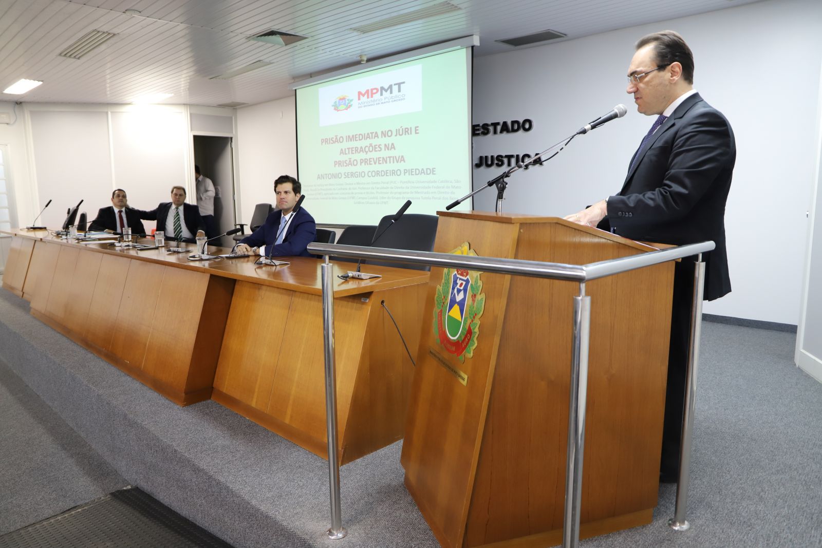 Ainda pela manhã, foi abordado o tema “Prisão Imediata no Júri e alterações na Prisão Preventiva”. O painel teve como palestrante o promotor de Justiça Antonio Sergio Cordeiro Piedade, como debatedores os promotores Cesar Danilo Ribeiro Novaes e Caio Márcio Loureiro, e como presidente de mesa o promotor Wesley Sanchez Lacerda. “Tivemos várias mudanças com a nova lei, uma delas é a prisão imediata no júri em caso de pena igual ou superior a 15 anos. Isso tem um reflexo importante e impacta o sistema de justiça criminal como um todo”, disse.