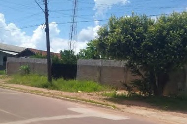 Descrição da Imagem #PraCegoVer - Imagem real da Rua Tiago Magalhães Nunes, em Peixoto de Azevedo, que mostra parte da calçada de terra, com mato, uma árvore do lado direito e um poste de energia elétrica do lado esquerdo, o que dificulta a passagem de pedestres. Ao fundo um muro com portão para entrada e saída de veículos.