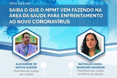 Os promotores de Justiça Alexandre de Matos Guedes e Nathalia Carol Manzano Magnani estreiaram hoje o novo projeto do Ministério Público do Estado de Mato Grosso, “MP e Você”, com uma live sobre a atuação da instituição na área da saúde em tempos de pandemia. Com cerca de 40 minutos de duração, a transmissão ao vivo foi realizada pela rede social Instagram e acompanhada por dezenas de pessoas, atingindo simultaneamente 103 visualizações. A jornalista Tania Rauber, do Departamento de Imprensa e Comunicação Social do MPMT, foi a responsável pela condução.