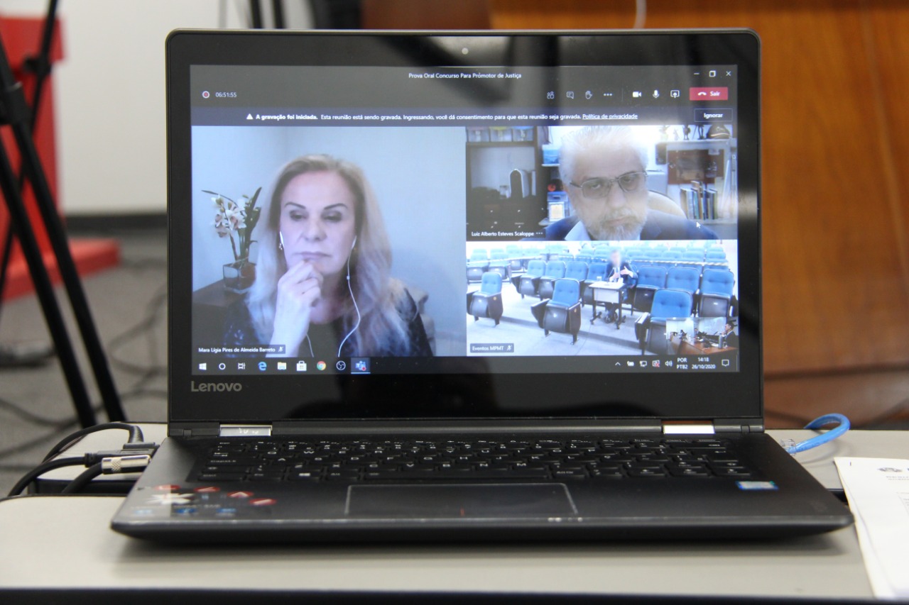 Também integram a Comissão do Concurso os procuradores de Justiça Luiz Alberto Esteves Scaloppe, Mara Ligia Pires de Almeida Barreto e Marcelo Ferra de Carvalho, sendo que os dois primeiros participam da avaliação remotamente, via sistema Microsoft Teams. Eles assistem à prova e fazem questionamentos por videoconferência.