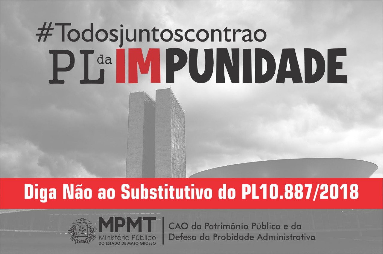 Para chamar a atenção da sociedade sobre as consequências do Substitutivo do Projeto de Lei 10.887/2018, que propõe alterações na Lei de Improbidade Administrativa, o Ministério Público do Estado de Mato Grosso lançou a campanha “Todos Juntos Contra o PL da Impunidade”. Iniciativa semelhante também está sendo realizada em outros estados.