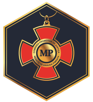 Insígnia instituída pelo Colégio de Procuradores de Justiça que aprovou a Resolução nº 03/94-CPJ, de 28 de abril de 1994, que institui o regramento para a concessão da Comenda “Promotor de Justiça Renato de Arruda Pimenta”.