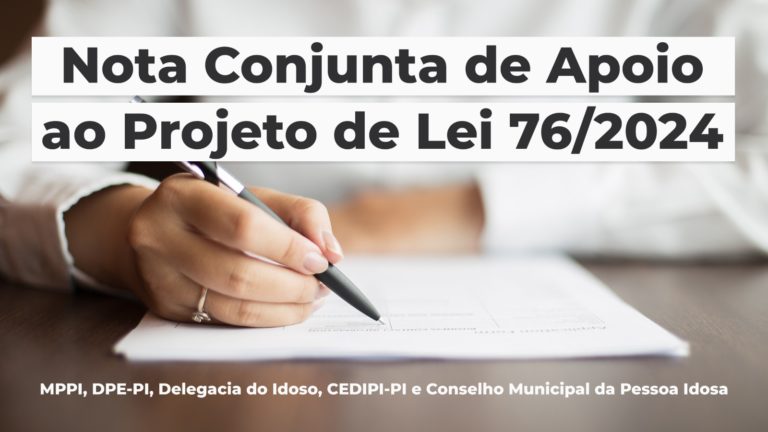 MPPI. Nota Conjunta: MPPI, DPE-PI, Delegacia do Idoso, CEDIPI-PI e Conselho Municipal da Pessoa Idosa manifestam apoio ao PL 76/2024