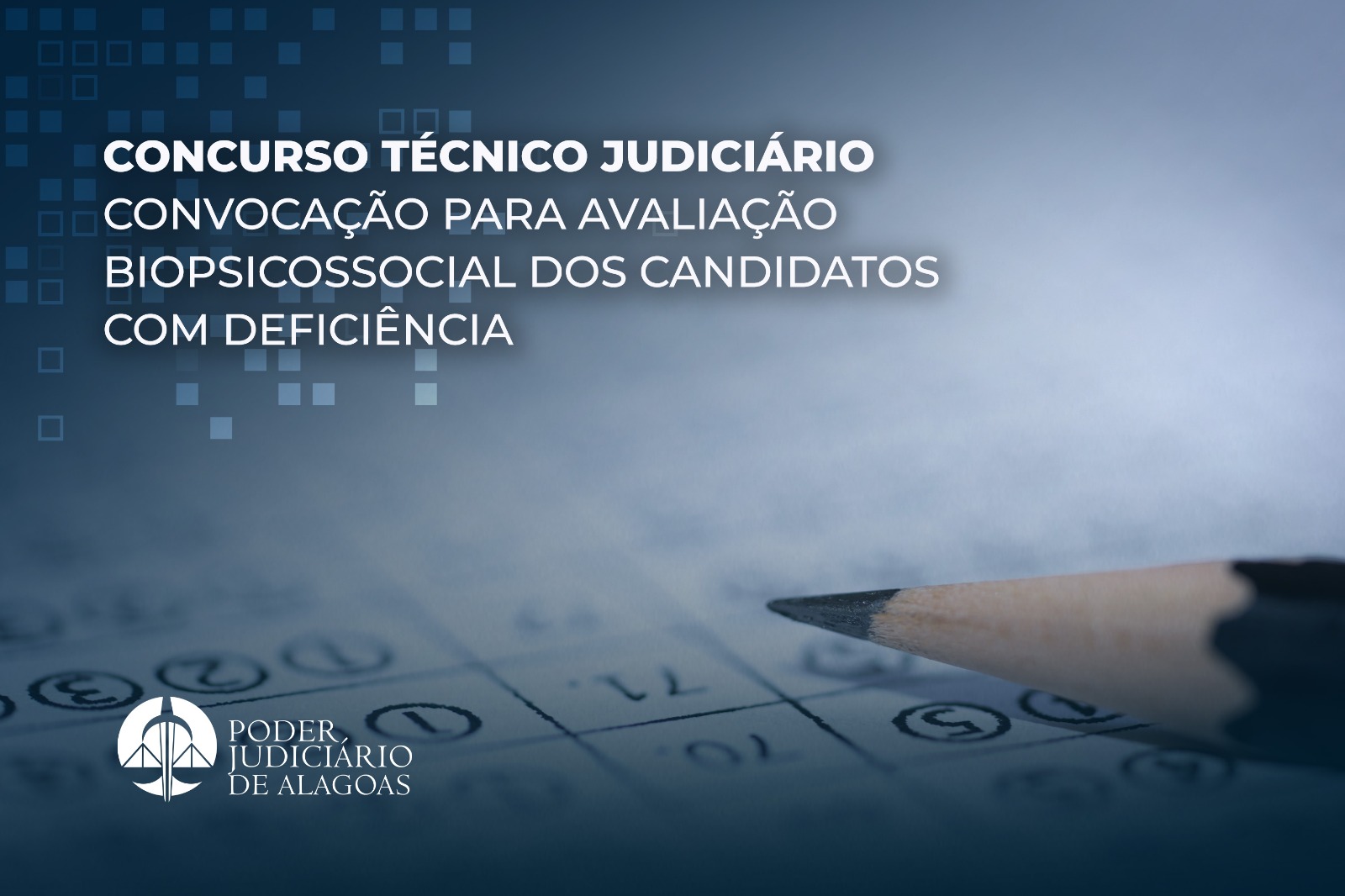 O Tribunal de Justiça de Alagoas (TJAL) convoca os candidatos com deficiência habilitados no concurso para o cargo de técnico judiciário (área judiciária) para a etapa de avaliação biopsicossocial, que ocorrerá no dia 13 de dezembro, por equipe multiprofissional na Clínica Fonoclin.