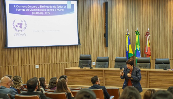 O inventário jurídico apresentado pela palestrante serviu para ilustrar o tempo histórico que o Estado brasileiro percorreu para absorver em seu aparato legal dispositivos que tratassem de uma atuação institucional voltada ao enfrentamento da violência de gênero.