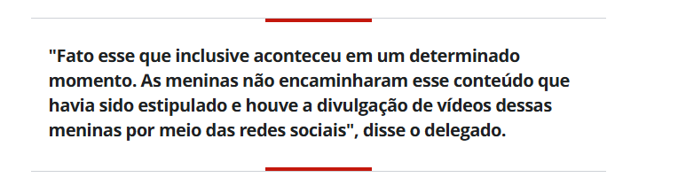 Após isso, o homem passou a chantagear constantemente as jovens, estipulando metas diárias de até dez vídeos por dia, com prazo de entrega até as 22h. Os suspeitos ameaçavam divulgar amplamente as imagens, caso as vítimas não cumprissem com os prazos, segundo o delegado.