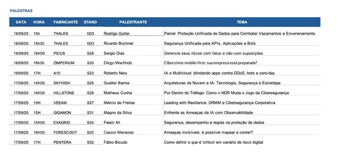 Os fabricantes parceiros da CLM chegam ao Mind The Sec reforçados por conquistas recentes de grande prestígio internacional. Entre os destaques, estão reconhecimentos em relatórios de referência do Gartner e do Forrester, como a liderança da Veeam em soluções de backup e recuperação, da Skyhigh Security e da Thales em proteção de dados e segurança em nuvem, além da posição de ponta da Picus Security e da Zimperium em simulação de ataques e defesa contra ameaças móveis.