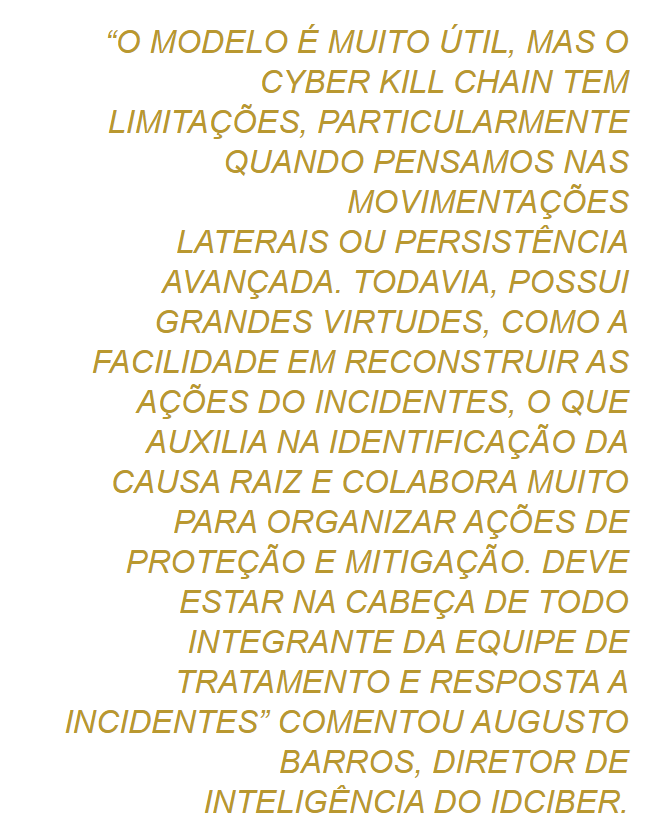 A partir das observações apresentadas em cada etapa, percebe-se que muitas etapas da kill chain exploram fatores humanos, medidas de conscientização e processos simples têm enorme impacto: