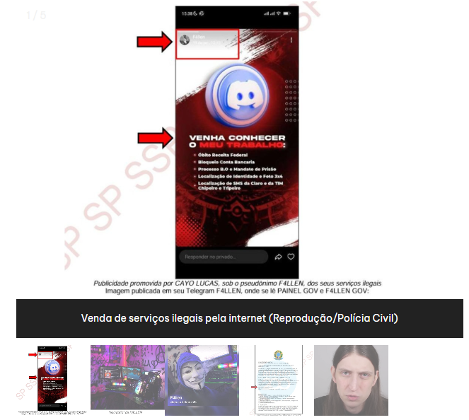 Já Cayo Lucas é apontado na investigação como especialista na “comercialização de logins governamentais”. Segundo a Polícia, ele conseguia invadir até login de juízes e chegou a disparar, no dia 13 de agosto, um mandado de prisão falso contra Felca.