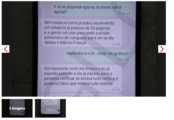 “Já estou escrevendo um relatório que já passou de cinquenta páginas e a gente vai usar para pedir a prisão preventiva do Cangussu para ver se ele delata o Márcio França”, afirmou, segundo os prints das mensagens entregues pelo hacker. Ela ainda teria sugerido que Brito hackeasse o próprio político: “Será que não dá para hackear o Márcio França direto, haha”.