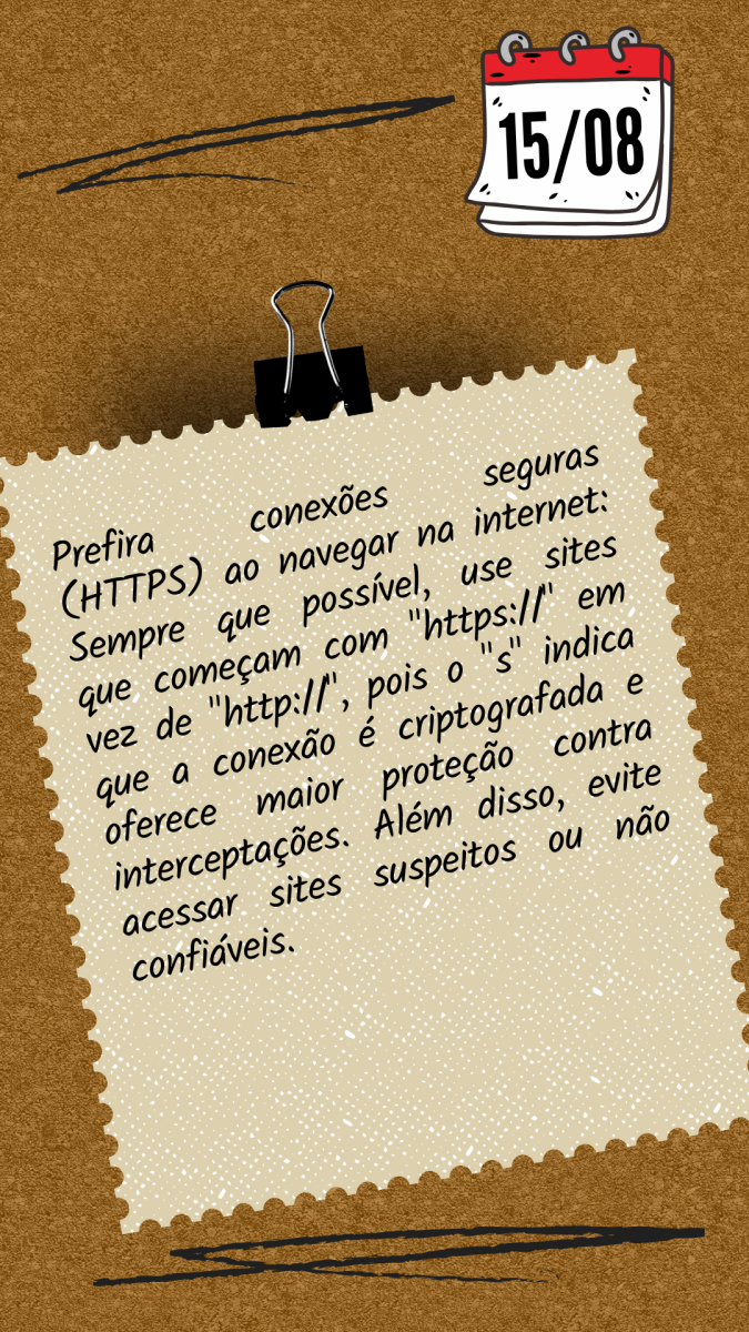 Prefira conexões seguras (HTTPS) ao navegar na internet.