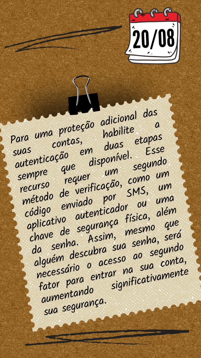 Para uma proteção adicional das suas contas, habilite a autenticação em duas etapas sempre que disponível.