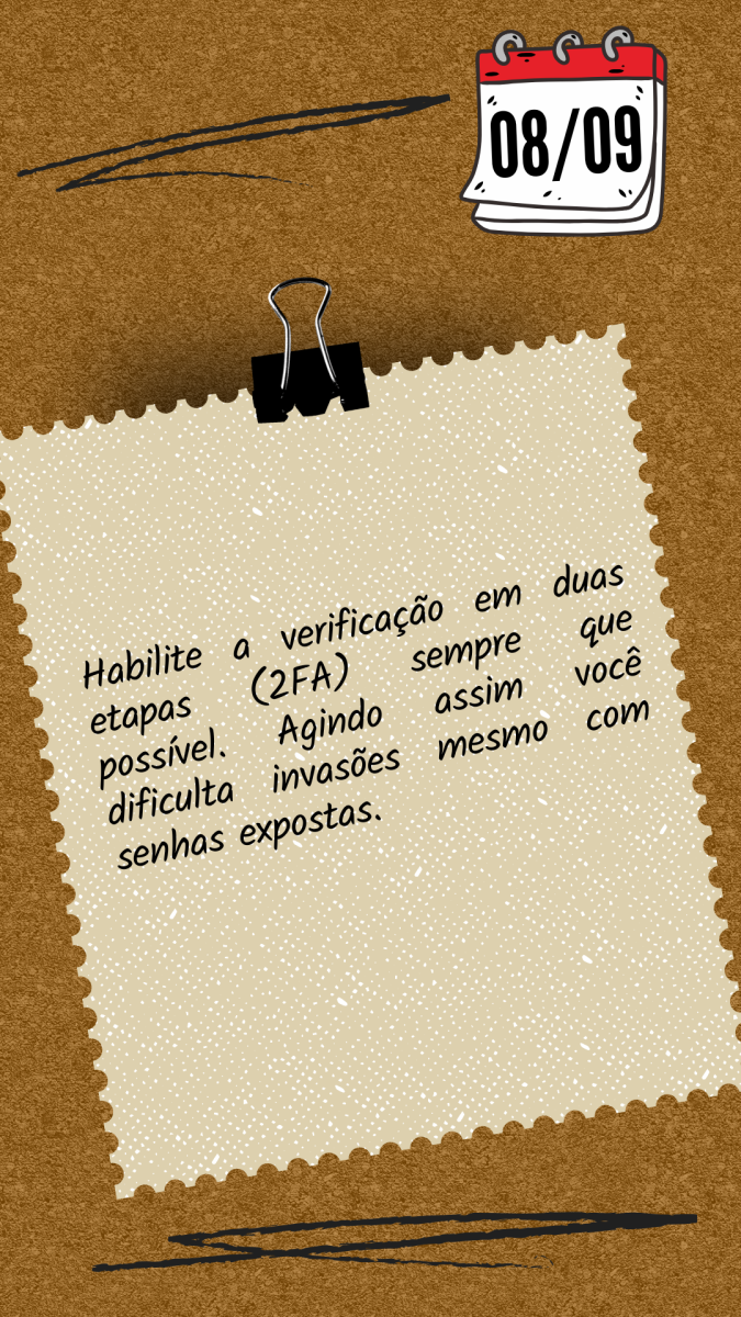 Habilite a verificação em duas etapas (2FA) sempre que possível.