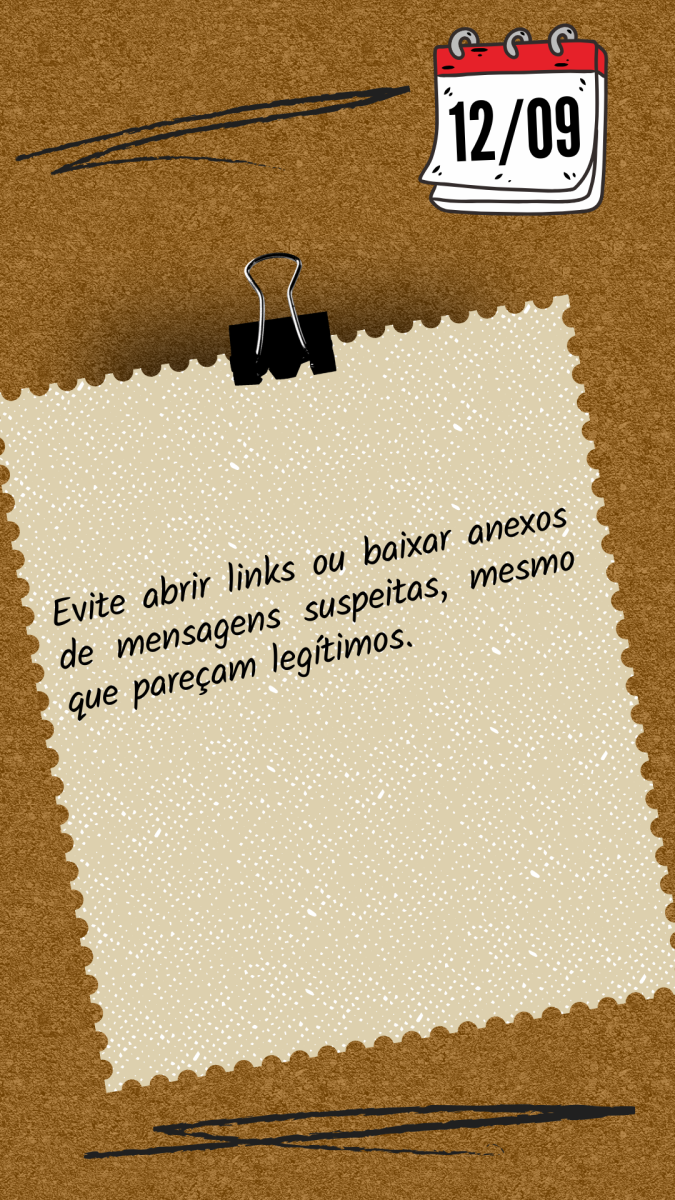 Evite abrir links ou baixar anexos de mensagens suspeitas.