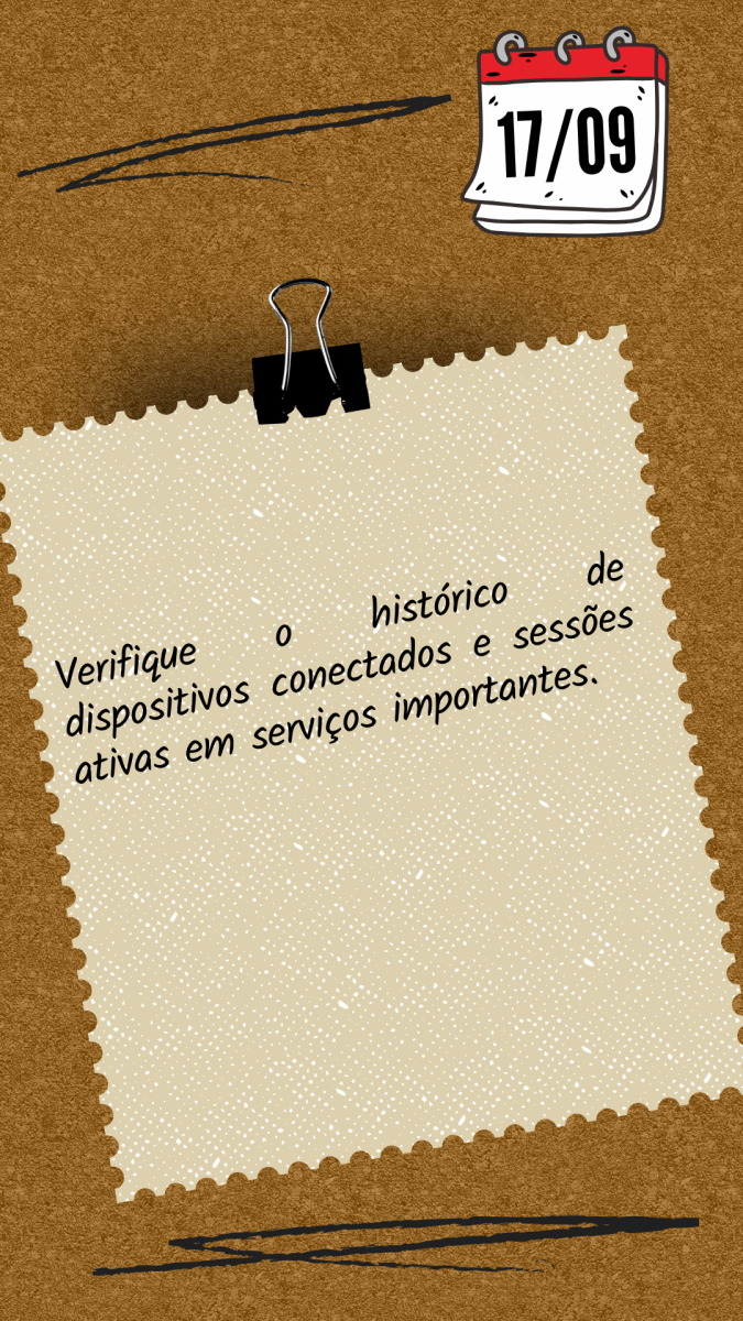 Verifique o histórico de dispositivos conectados e sessões ativas.