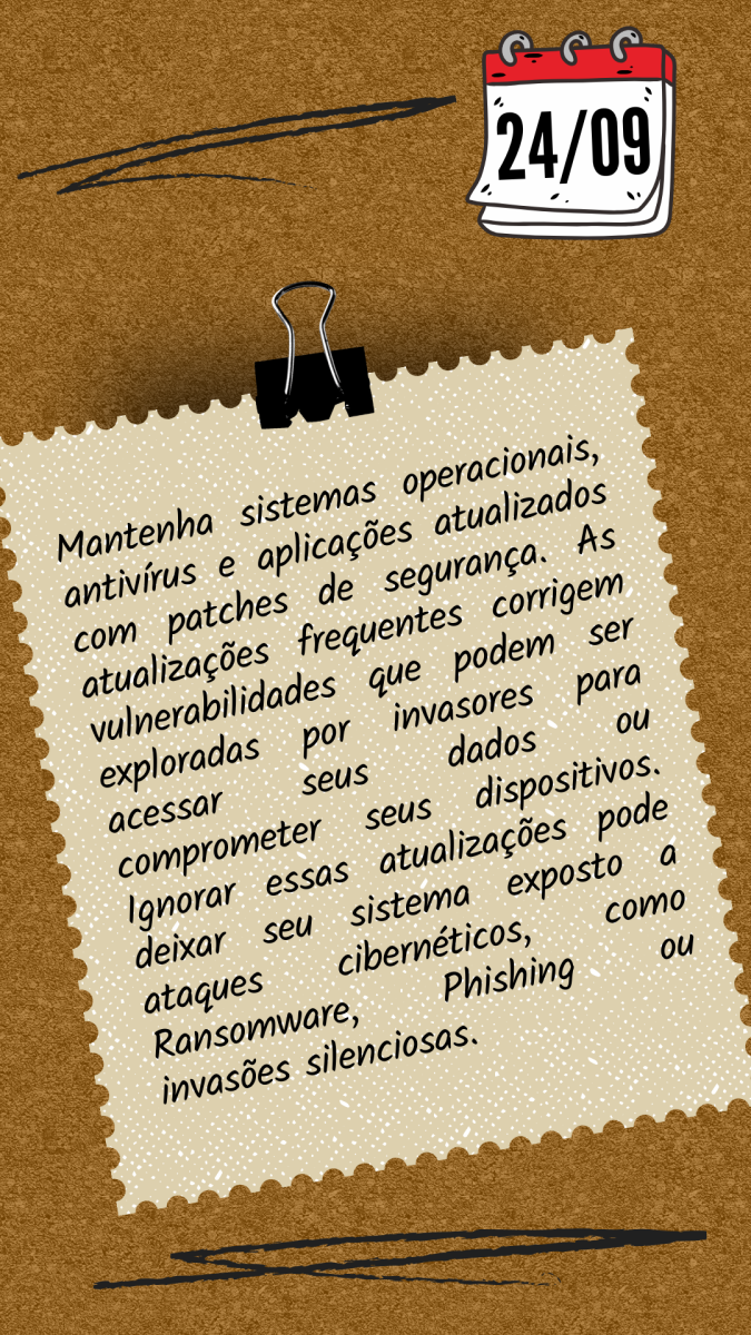 Mantenha sistemas operacionais, antivírus e aplicações atualizados com patches de segurança.