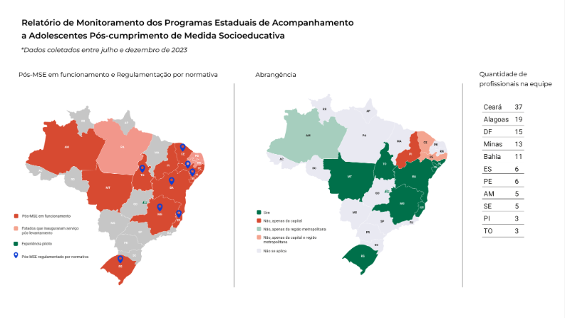 O relatório mostra que a maioria dos estados instituiu seus programas a partir de 2009, período posterior à publicação da Resolução do Conselho Nacional dos Direitos da Criança e do Adolescente nº 119/2006, que estabeleceu diretrizes para o Sistema Nacional de Atendimento Socioeducativo (Sinase) e incluiu a previsão do acompanhamento pós-medida. O movimento cresceu com a Lei Federal nº 12.594/2012, que instituiu o Sinase, e com o Plano Nacional de Atendimento Socioeducativo de 2013, que induziu planos estaduais e municipais.