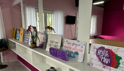 As cores lilás e rosa predominam em todo o ambiente do Coletivo de Mulheres do Brasil em Ação em Penha (CMBA). A Organização Não Governamental (ONG) é uma referência no atendimento e combate à violência contra mulheres no município. O Ministério Público de Santa Catarina (MPSC) presta apoio ao projeto, promovendo as medidas de urgência cabíveis nos atendimentos encaminhados pela ONG.