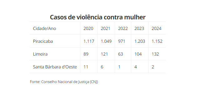 Limeira (SP) registrou 132 casos de violência contra a mulher em 2024 de acordo com o Conselho Nacional de Justiça (CNJ).